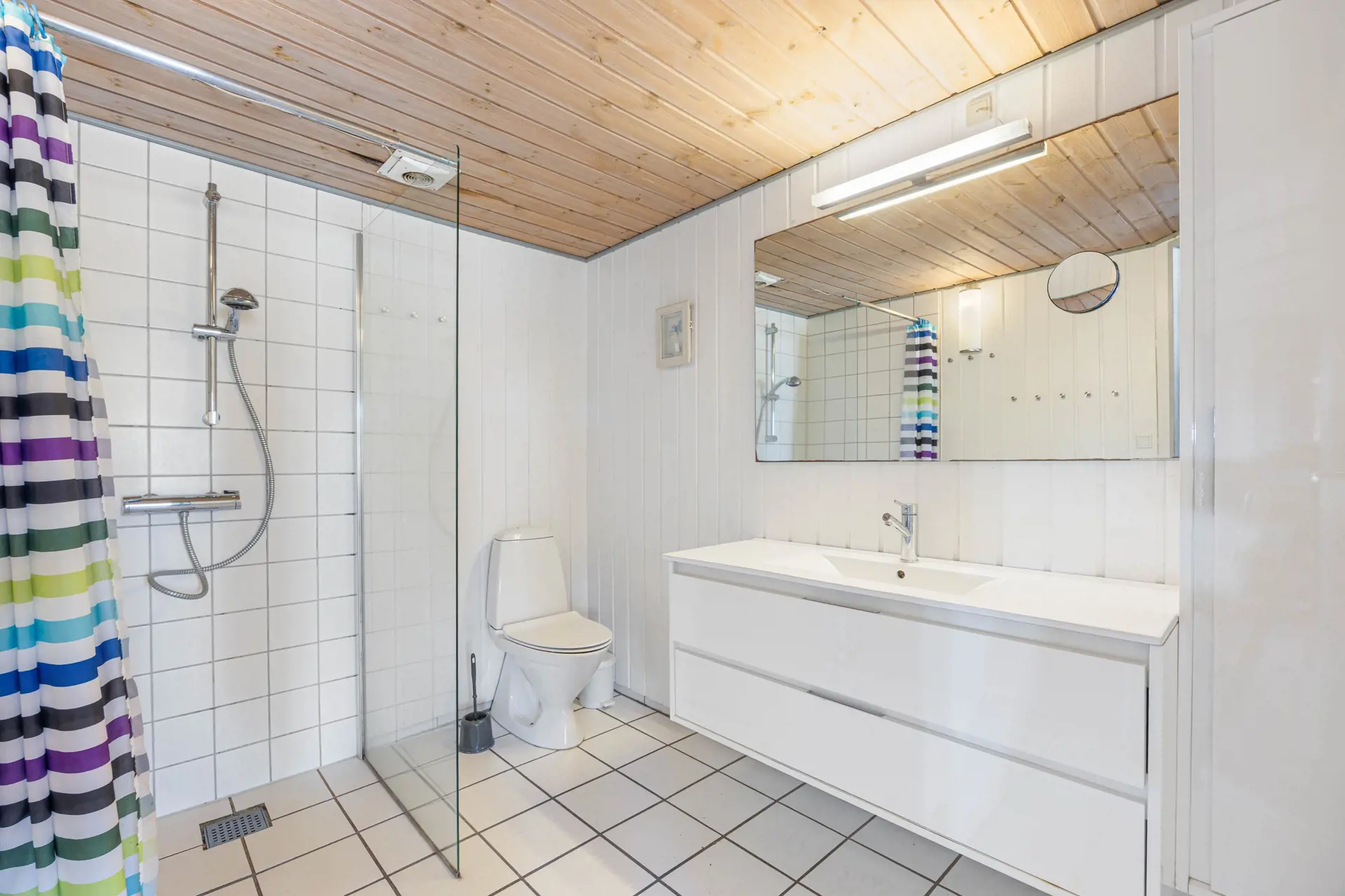 Das Ferienhaus bietet 2 Badezimmer mit Fußbodenheizung, sodass ihr morgens keine kalten Füße habt. Außerdem ist eine Waschmaschine vorhanden.