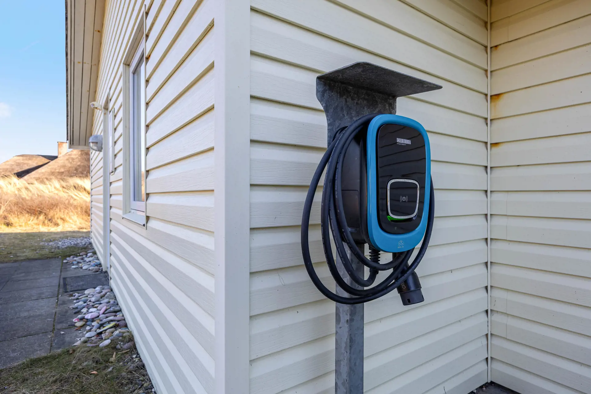 Zusätzlich gibt es draußen eine Ladestation für Elektroautos.