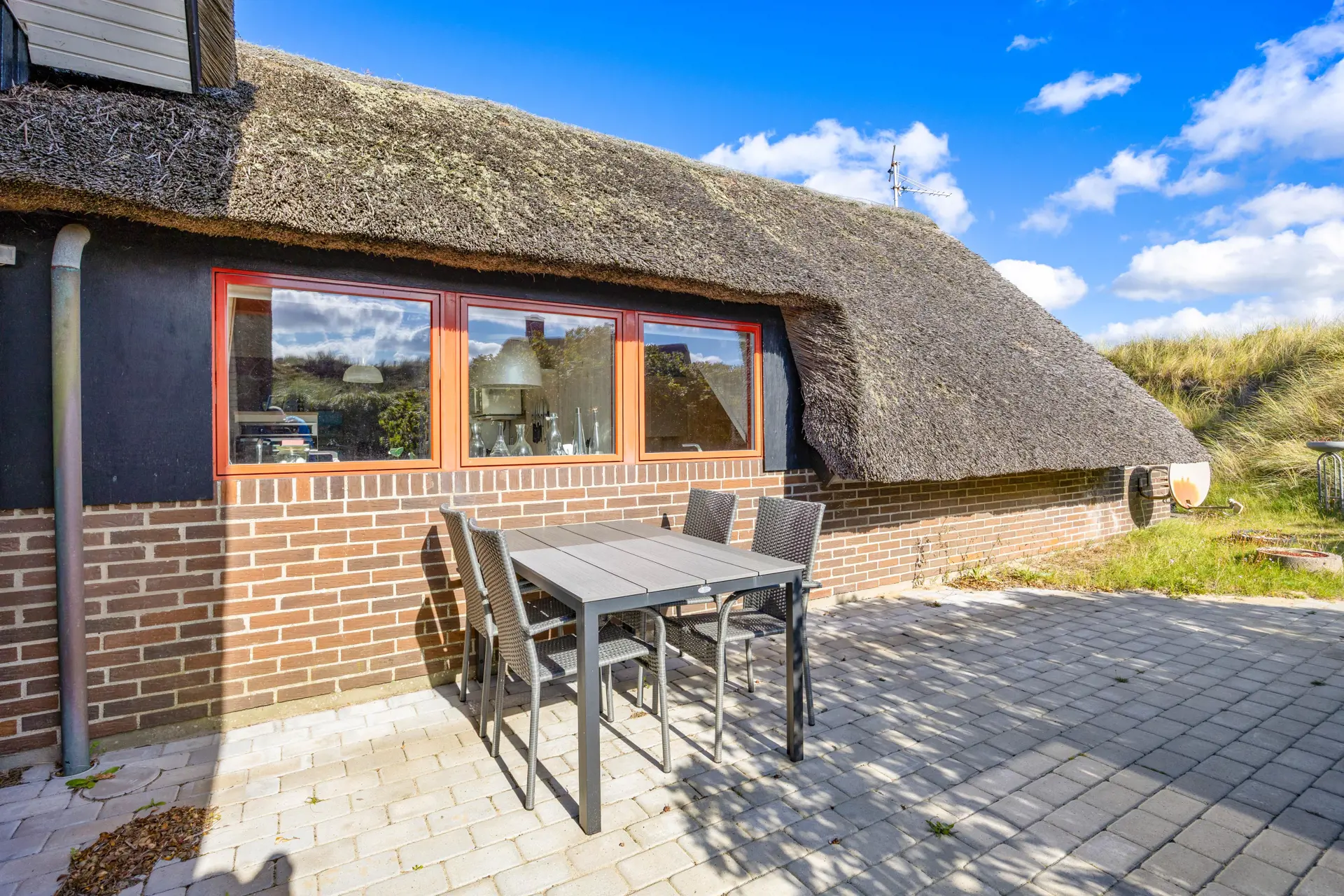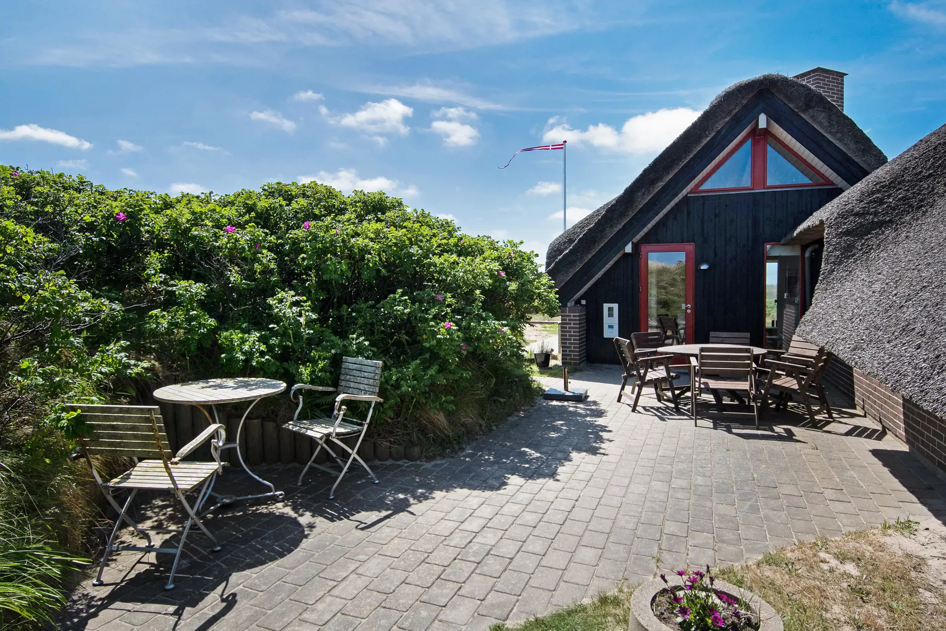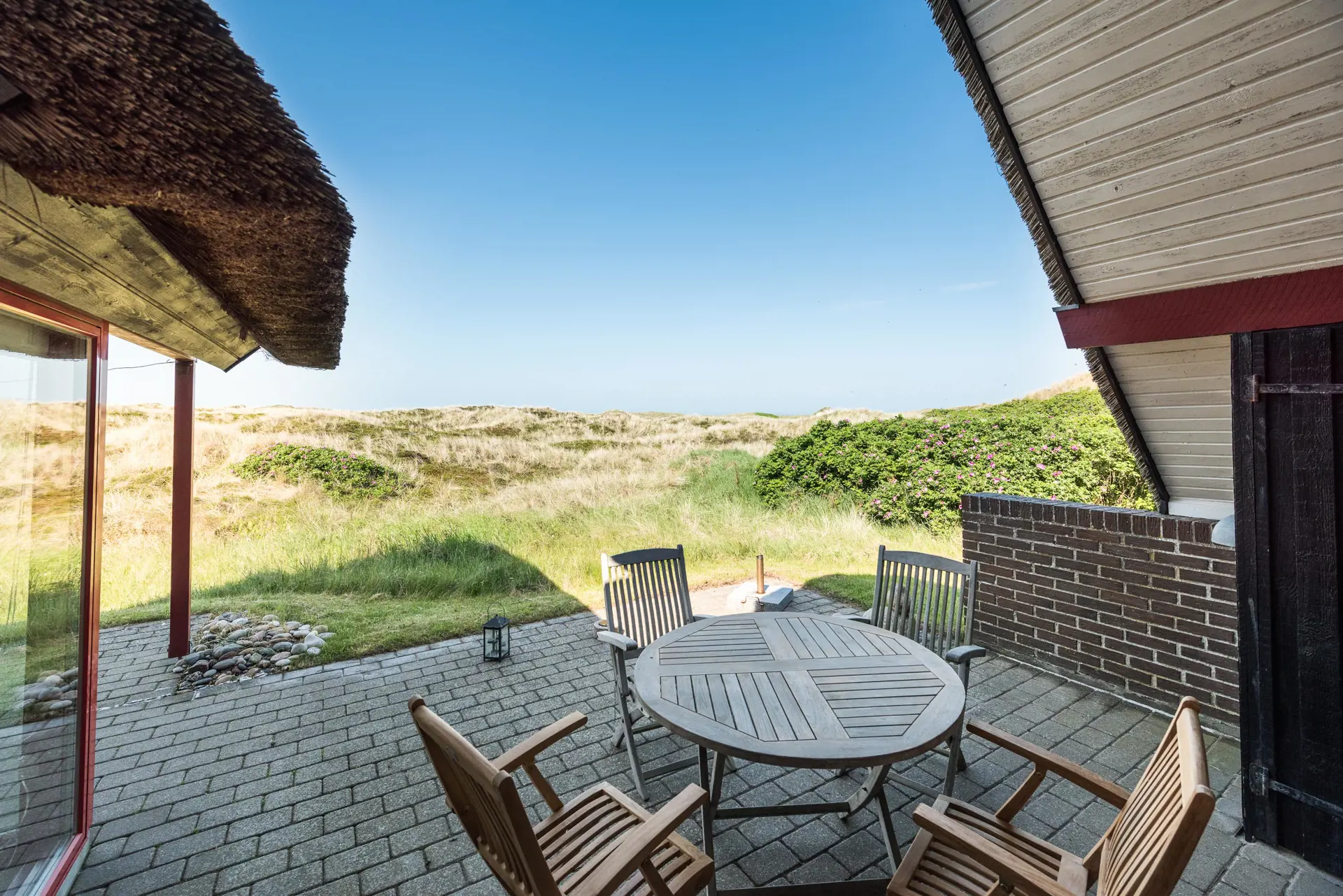 Reetgedecktes Ferienhaus mit persönlicher Einrichtung. Das Haus liegt direkt an den Dünen und nah an der Nordsee, welches es einfach macht zum Strand zu gelangen. Von der Terrasse hast du einen tollen Blick auf die Dünen, hier kann man die langen Sommerabende genießen.