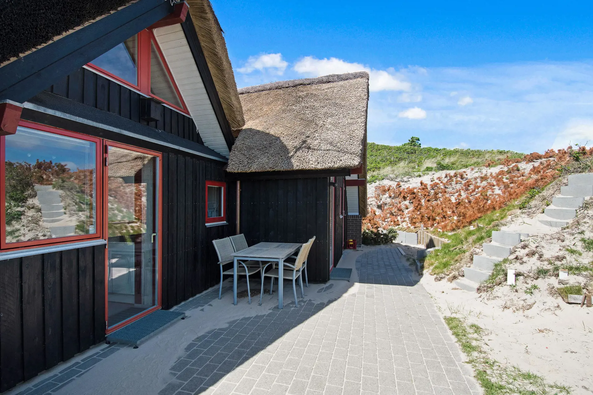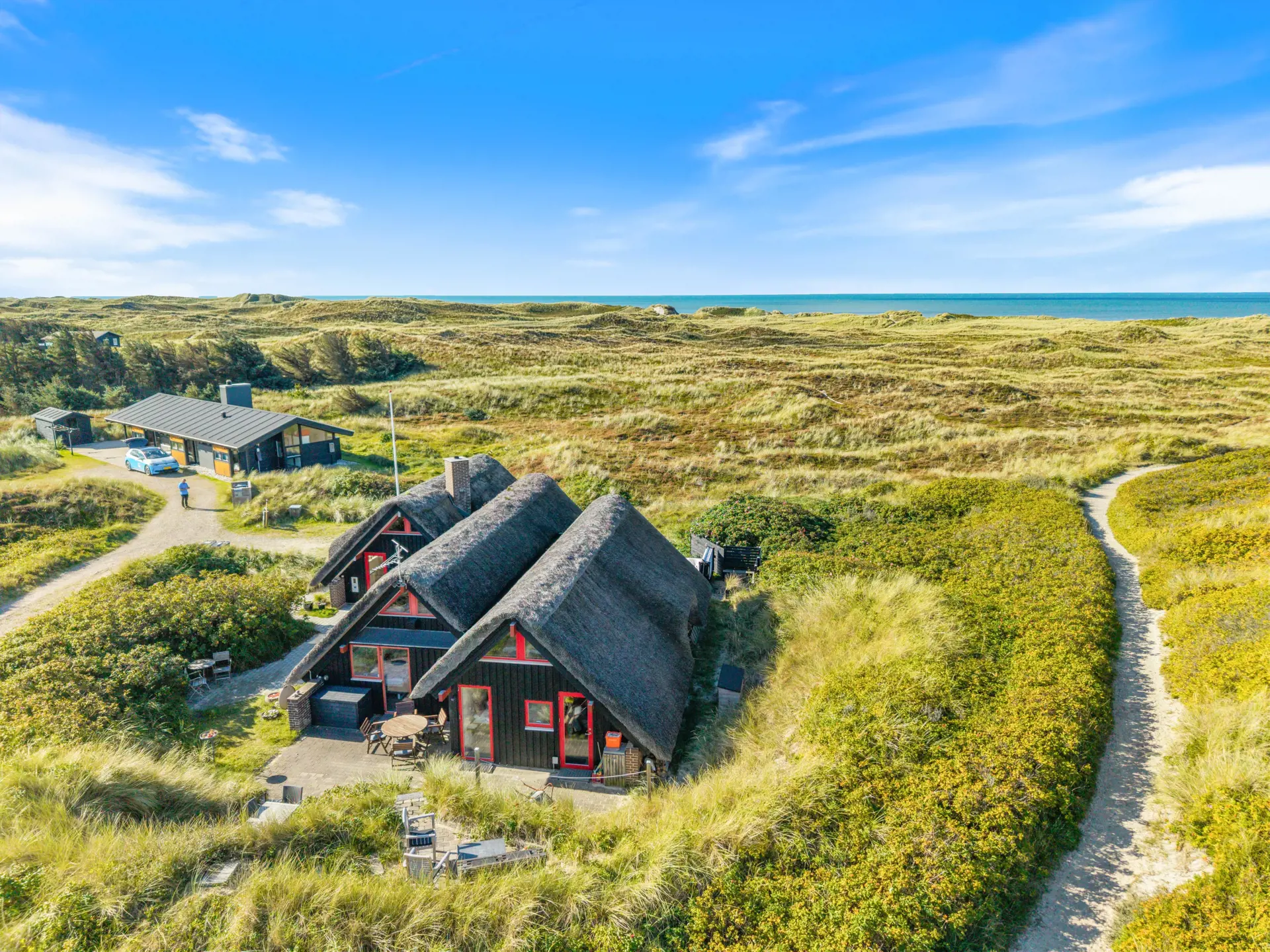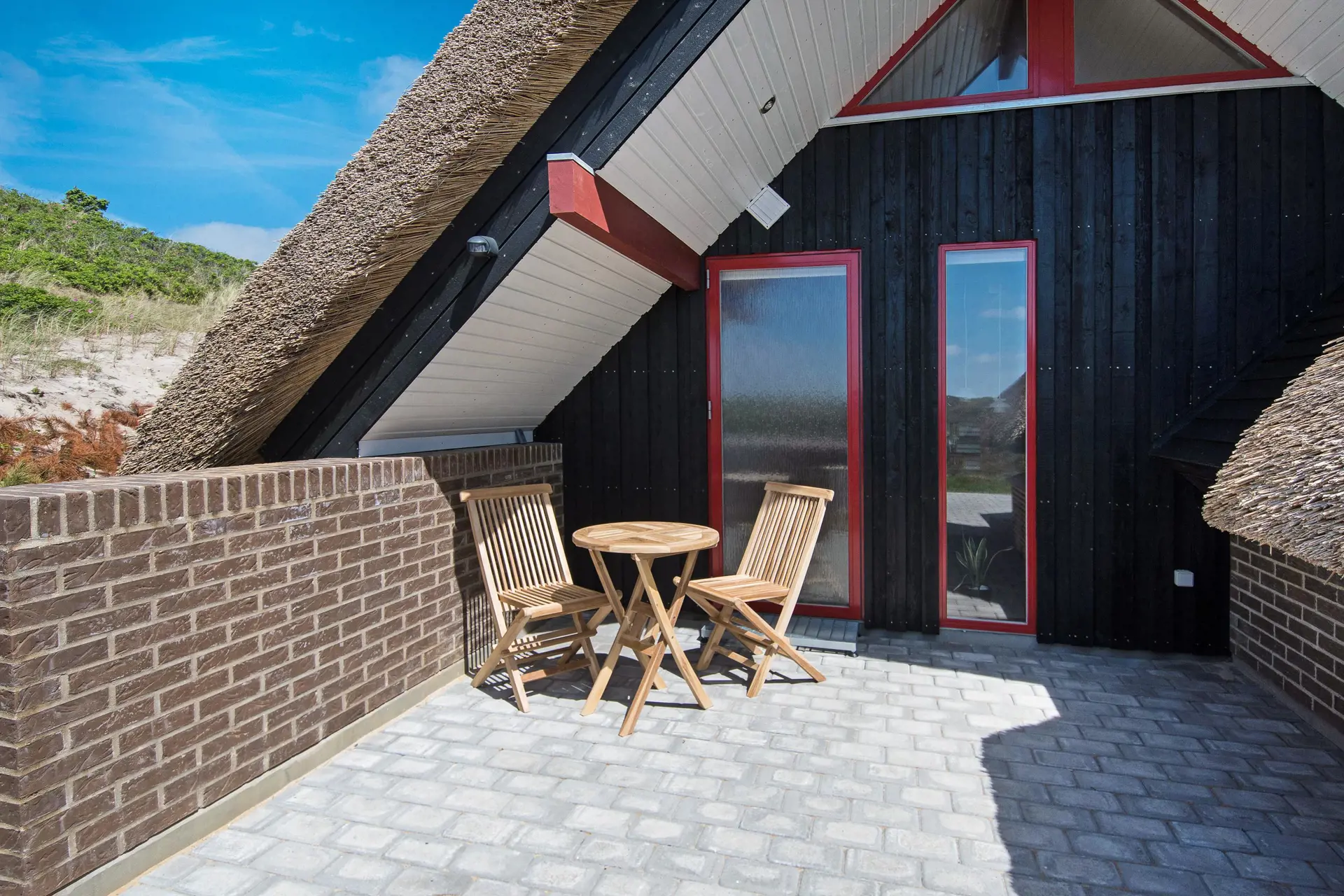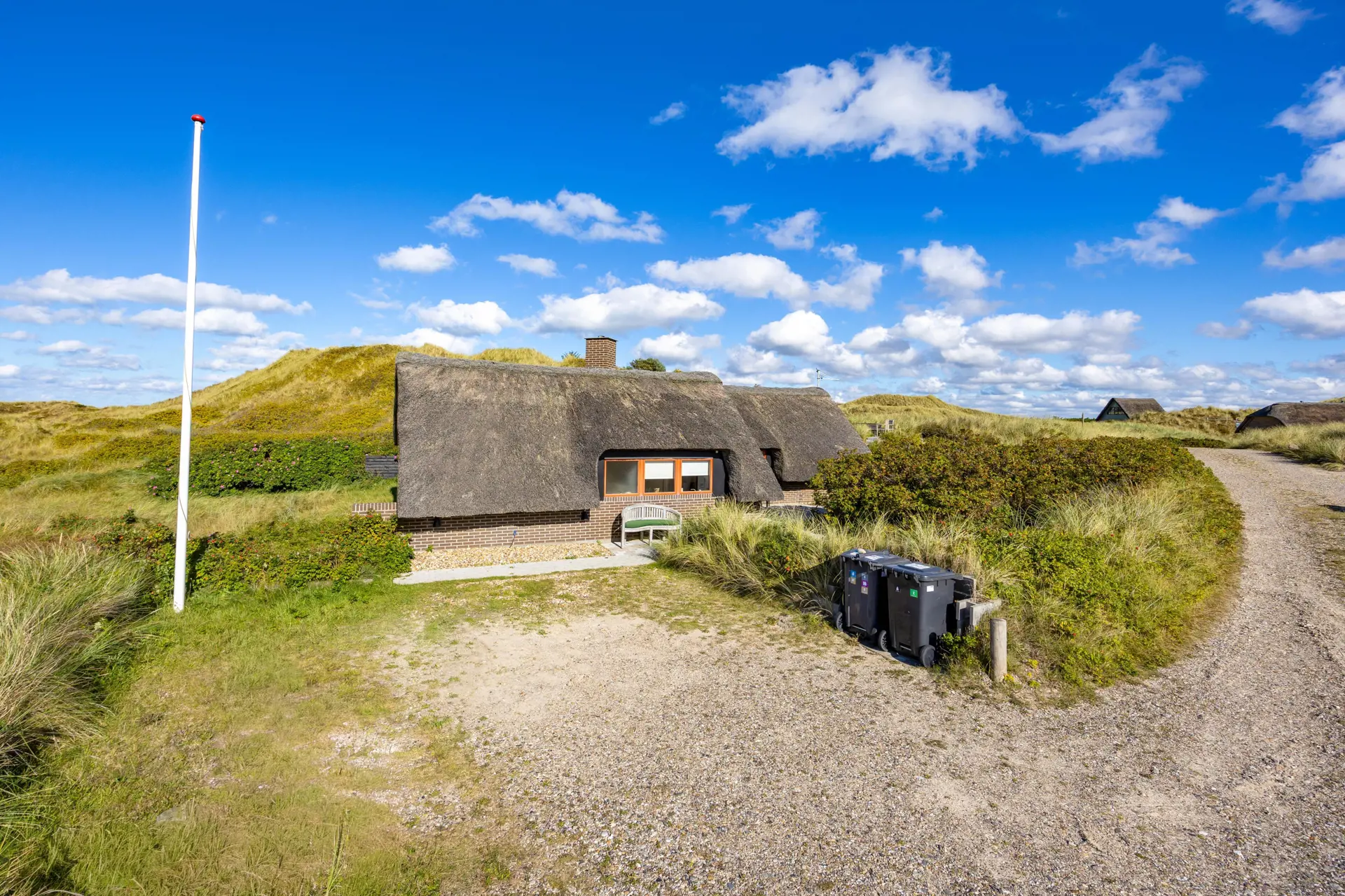 Reetgedecktes Ferienhaus mit persönlicher Einrichtung. Das Haus liegt direkt an den Dünen und nah an der Nordsee, welches es einfach macht zum Strand zu gelangen. Von der Terrasse hast du einen tollen Blick auf die Dünen, hier kann man die langen Sommerabende genießen.