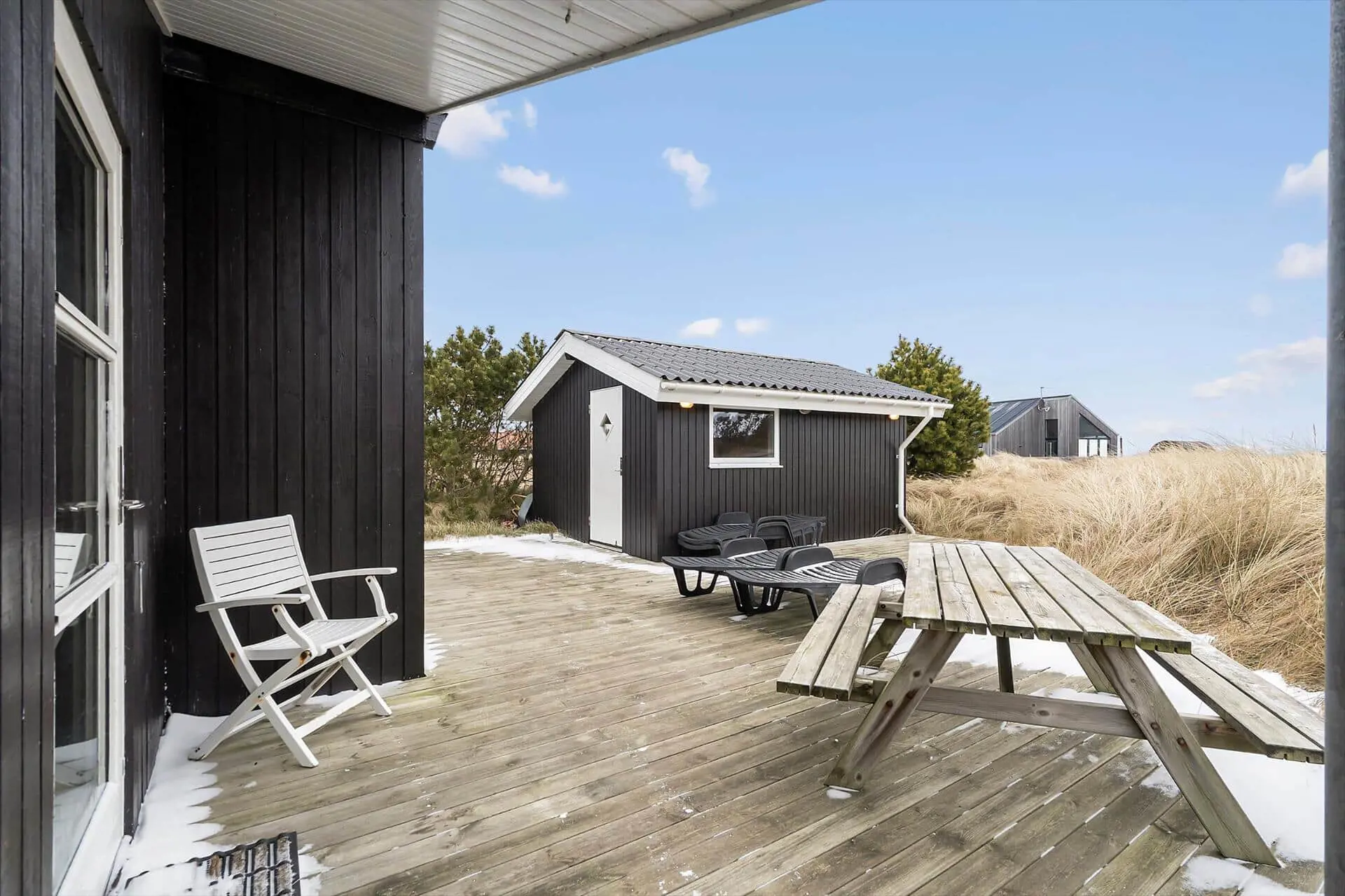 Das Outdoor-Leben rund um das Ferienhaus ist mindestens genauso einladend. Rund um das Haus findest du mehrere schöne Terrassen, auf denen du die Sonne von morgens bis abends genießen kannst. Starte den Tag mit Frühstück im Windschutz und lass ihn mit langen Sommerabenden dort ausklingen, wenn der Grill angeheizt wird und ihr bis spät in den Abend zusammensitzt.