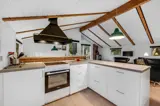 Die Küche ist mit Kühlschrank ausgestattet. Außerdem gibt es 4 Keramik-Kochfelder, Umluftofen, Mikrowelle sowie Geschirrspüler.