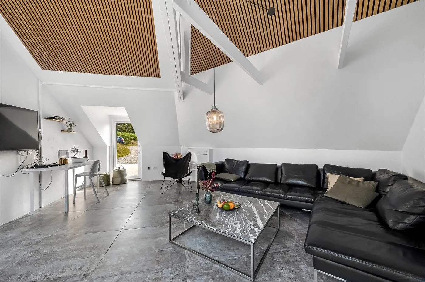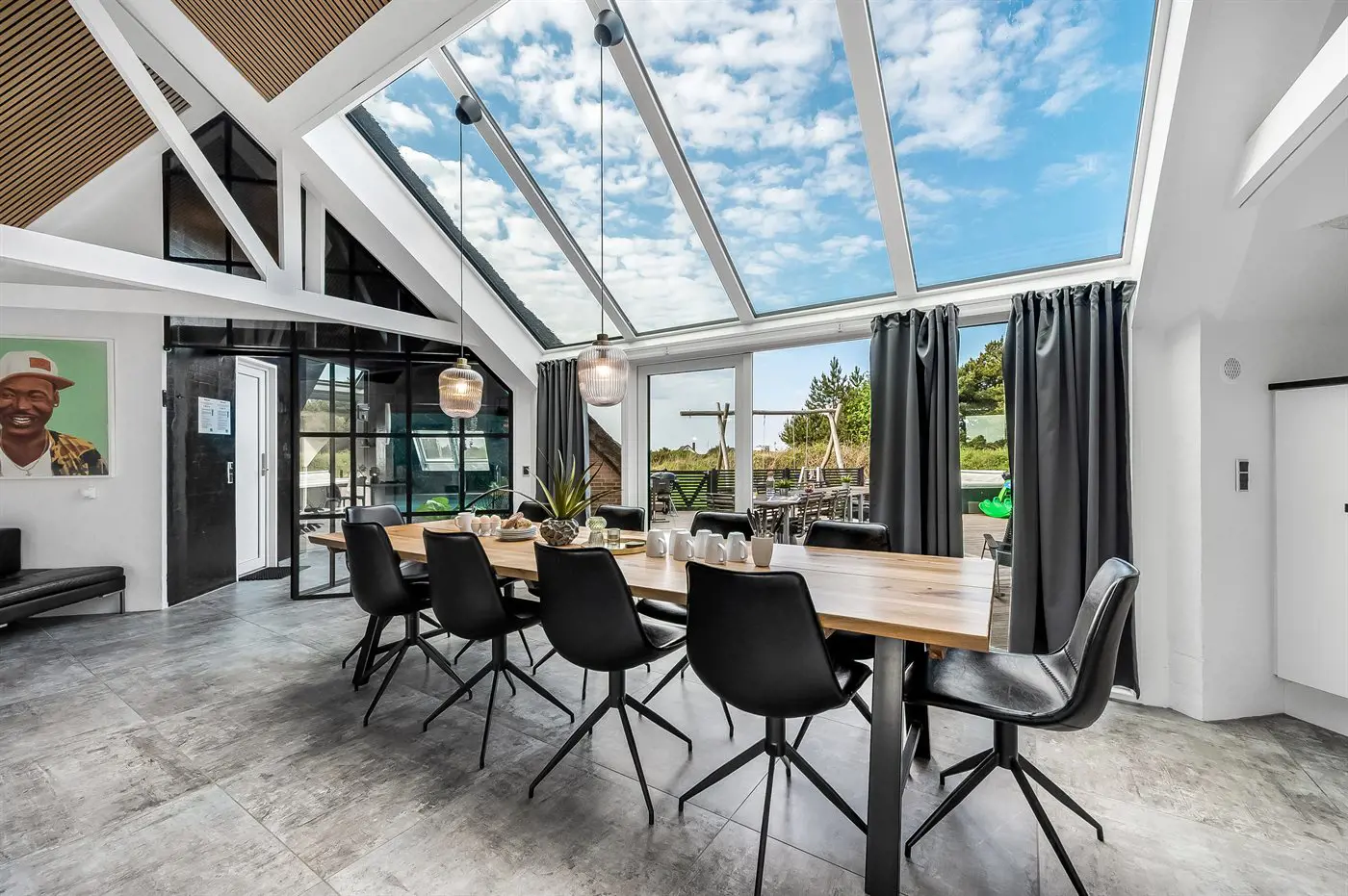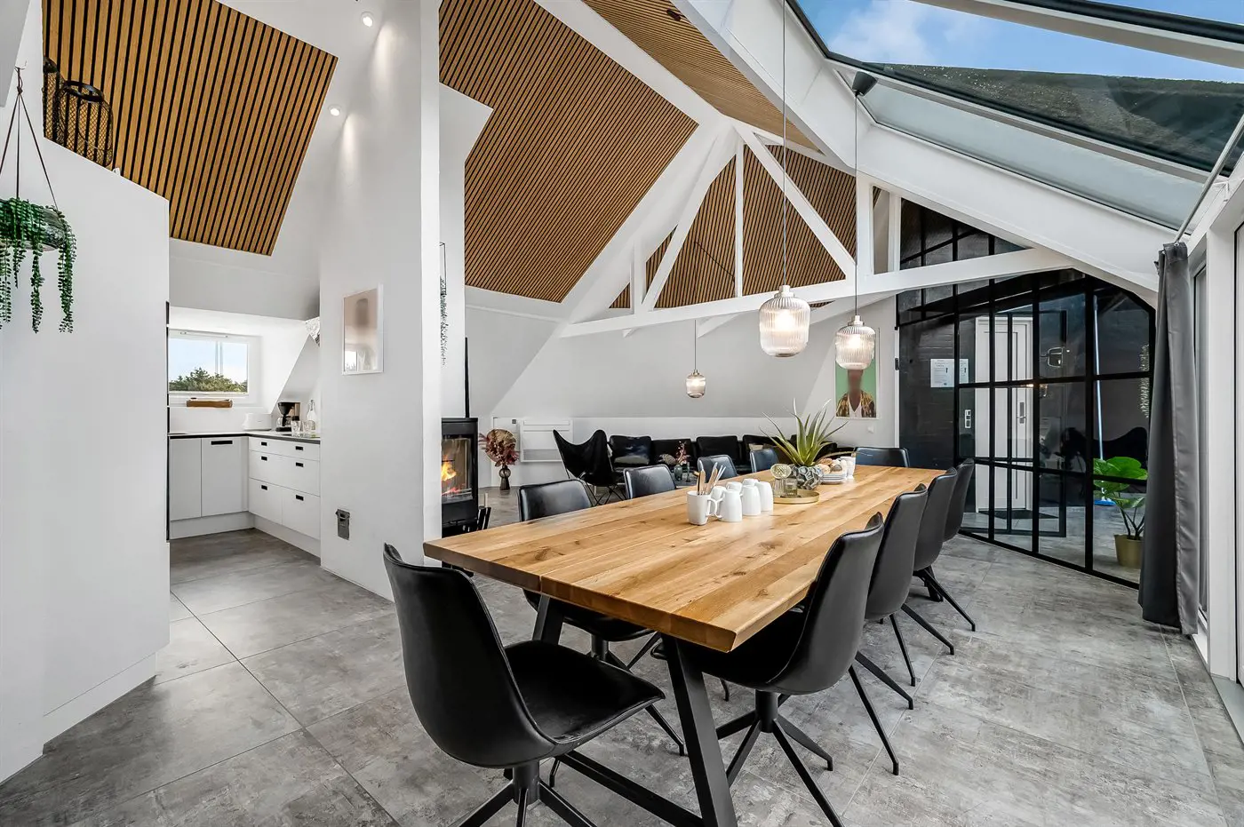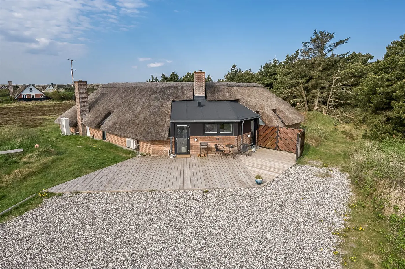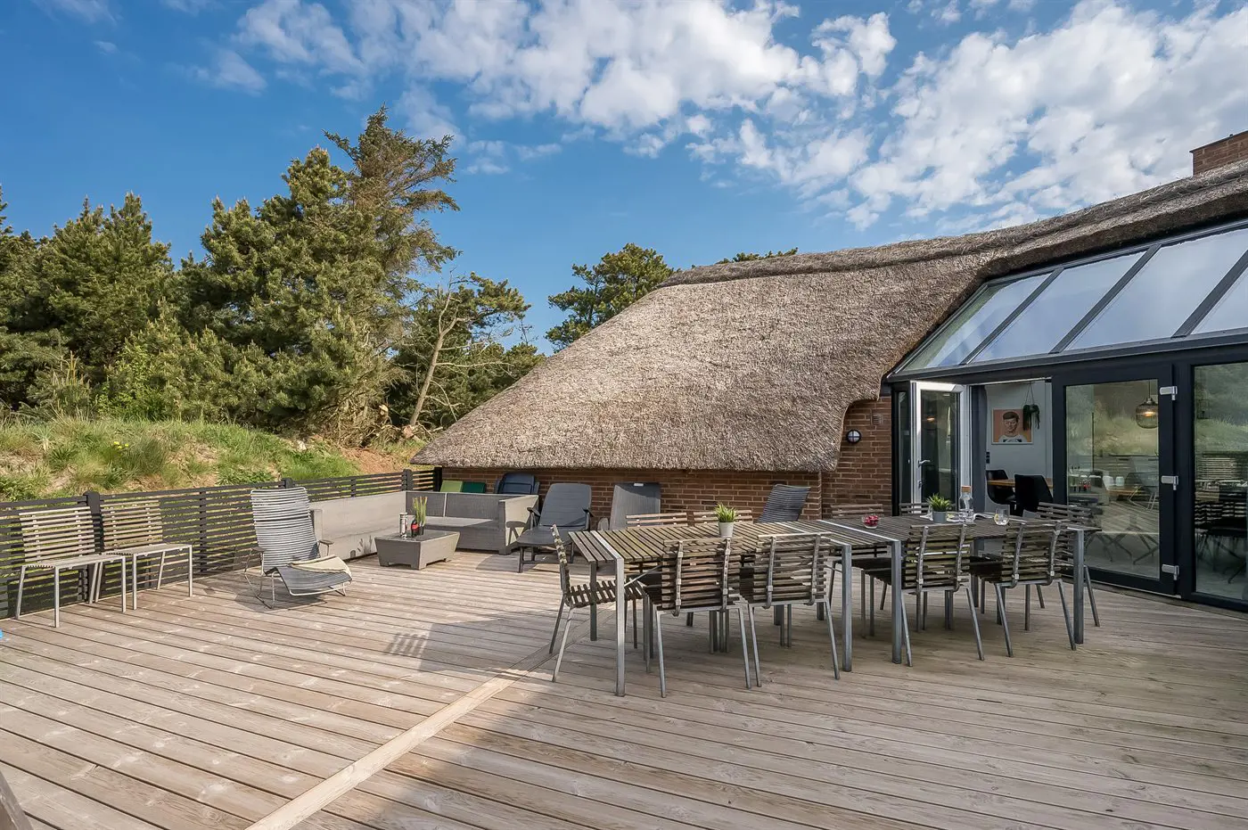 Die Ferienunterkunft liegt auf einem 2537 m² großen Naturgrundstück. Die Entfernung zum Meer beträgt 750 m. Die Entfernung zum Fjord beträgt 750 m. Die nächste Einkaufsmöglichkeit liegt 6000 m entfernt. In einem Abstand von 7000 m gibt es einen Golfplatz. Das Ferienhaus verfügt über eine teilweise geschlossene Terrasse. Schaukel. Es steht ein Grill zur Verfügung. Es ist ein Ladestecker für Elektroautos installiert. Mit einer Ladeleistung von 11 kW. Parkplatz auf dem Grundstück.