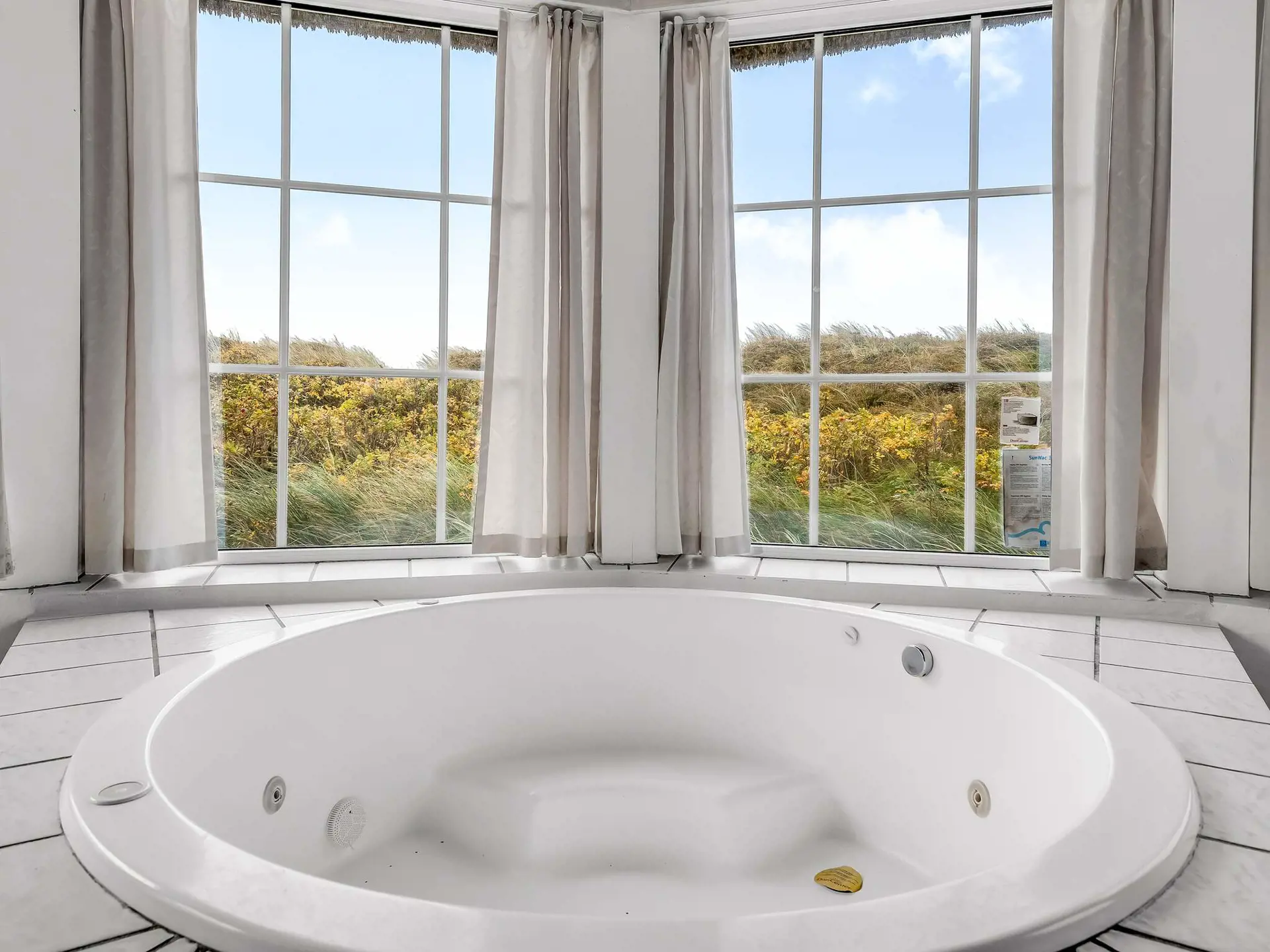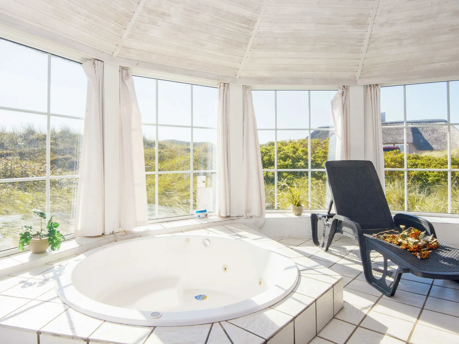 Geräumiges, reetgedecktes Ferienhaus mit Pool, Whirlpool und Sauna im Haus sowie ausreichend Platz für bis zu 10 Personen. Liegt attraktiv an der äußersten Dünenreihe in Klegod, sodass man die frische Meeresbrise immer genießen kann.