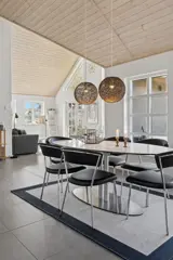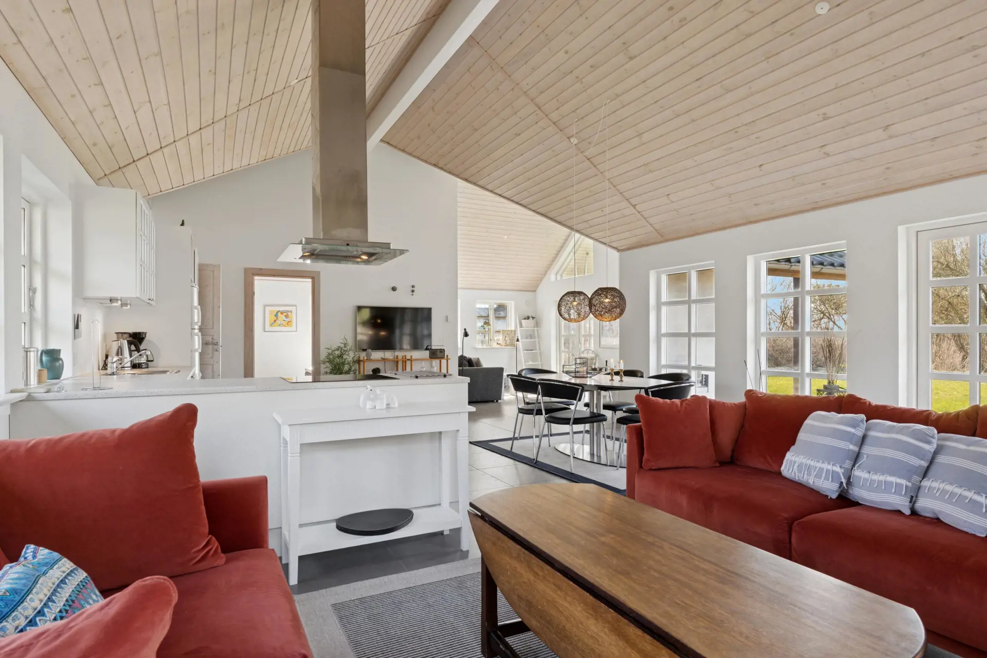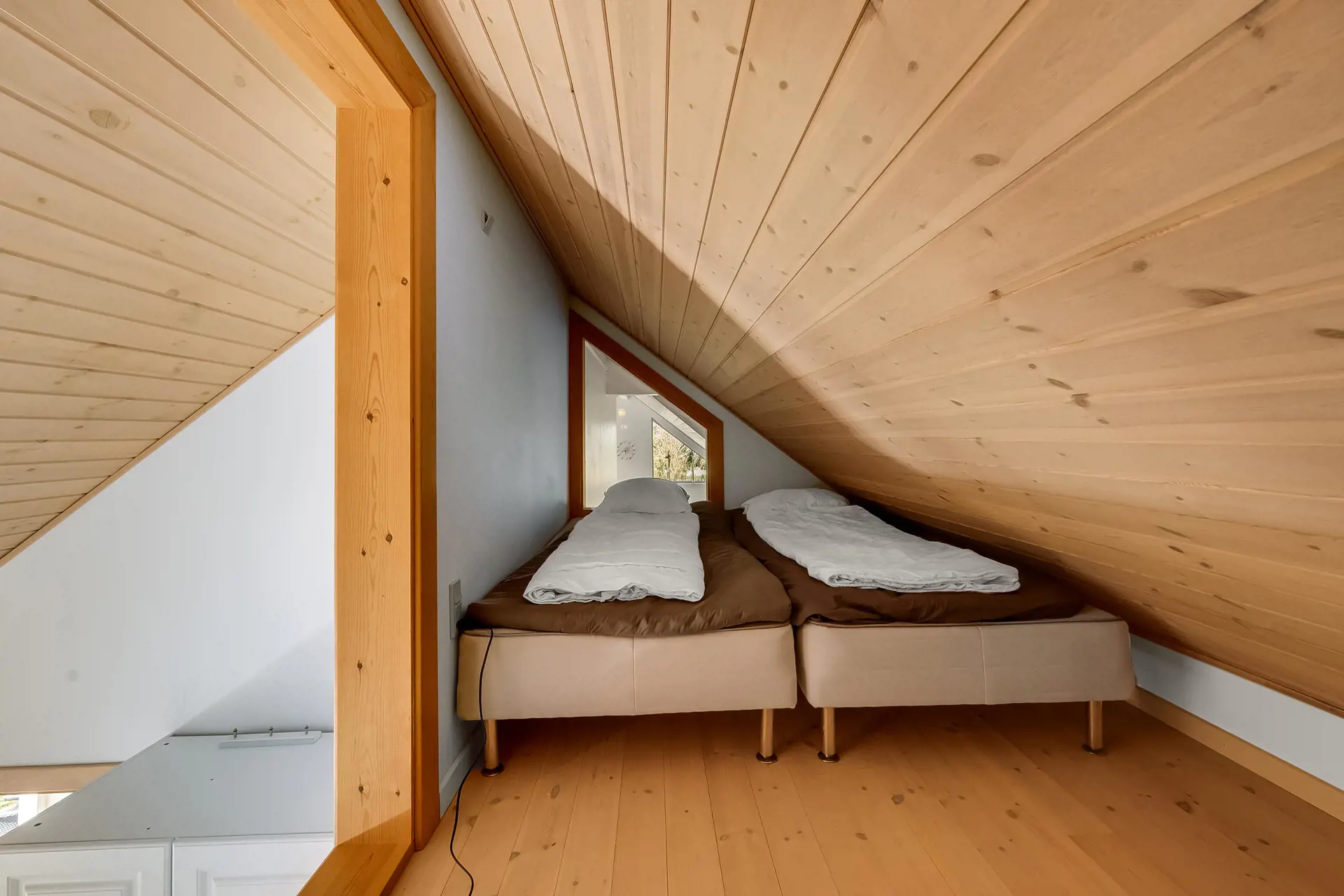 Das 120 m² große Ferienhaus bietet alles, was Sie für einen komfortablen Aufenthalt benötigen. Es verfügt über zwei Schlafzimmer mit Doppelbetten sowie einen gemütlichen Schlafboden (Hems), auf dem die jüngeren Familienmitglieder schlafen oder sich mit dem Tablet entspannen können.