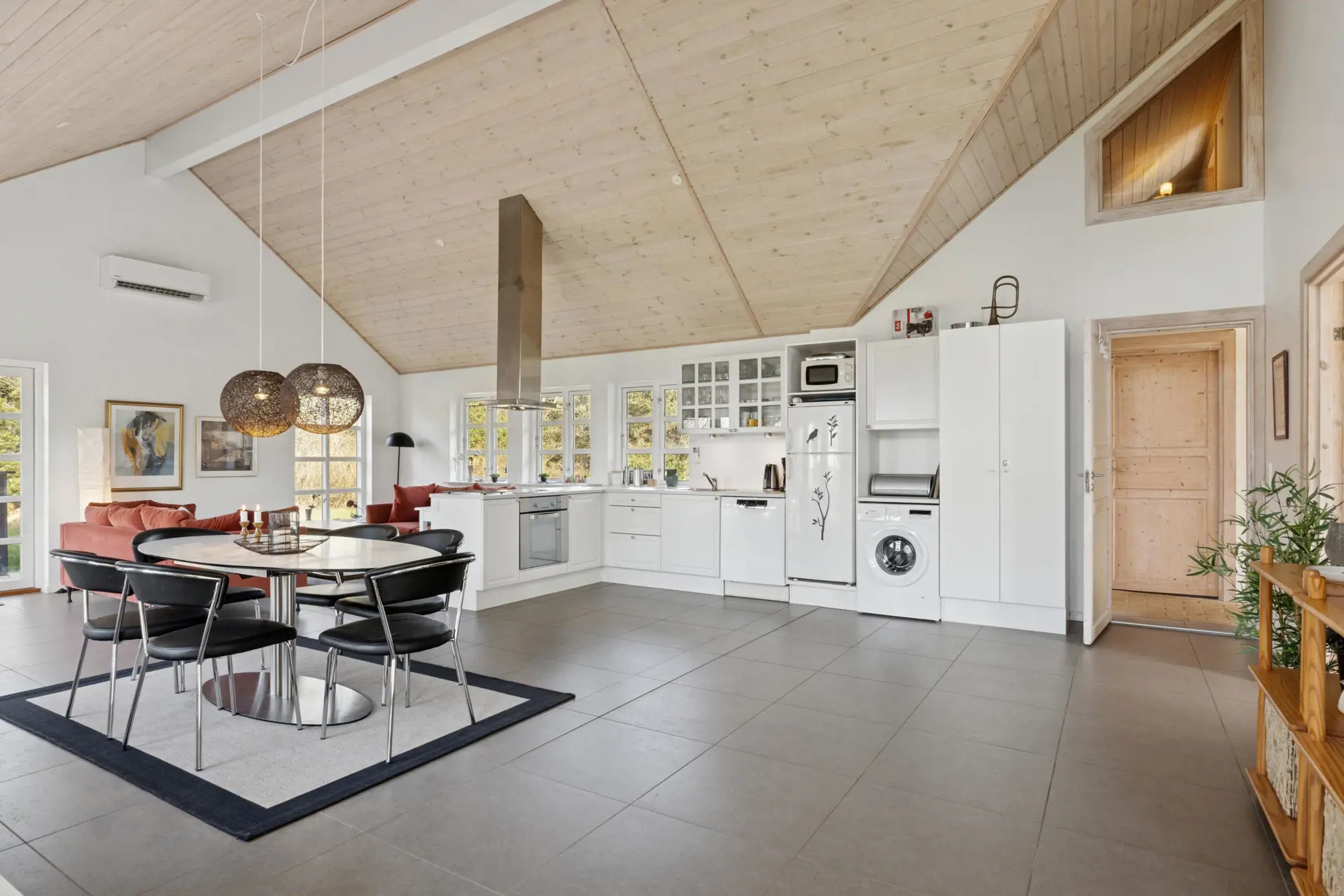 Zur Ausstattung gehören moderne Annehmlichkeiten wie Geschirrspüler, Mikrowelle, Waschmaschine und kostenloses WLAN. Energiesparende Wärmepumpen und Fußbodenheizung sorgen das ganze Jahr über für ein angenehmes Raumklima und helfen, die Energiekosten niedrig zu halten.