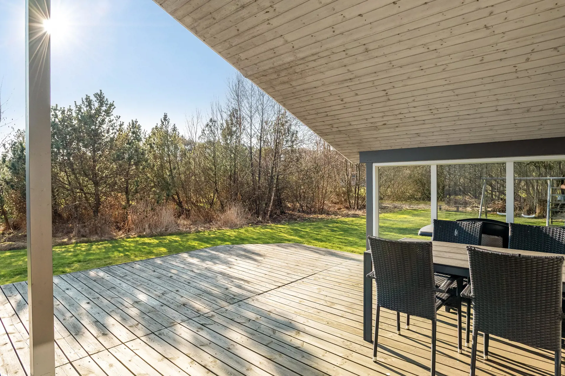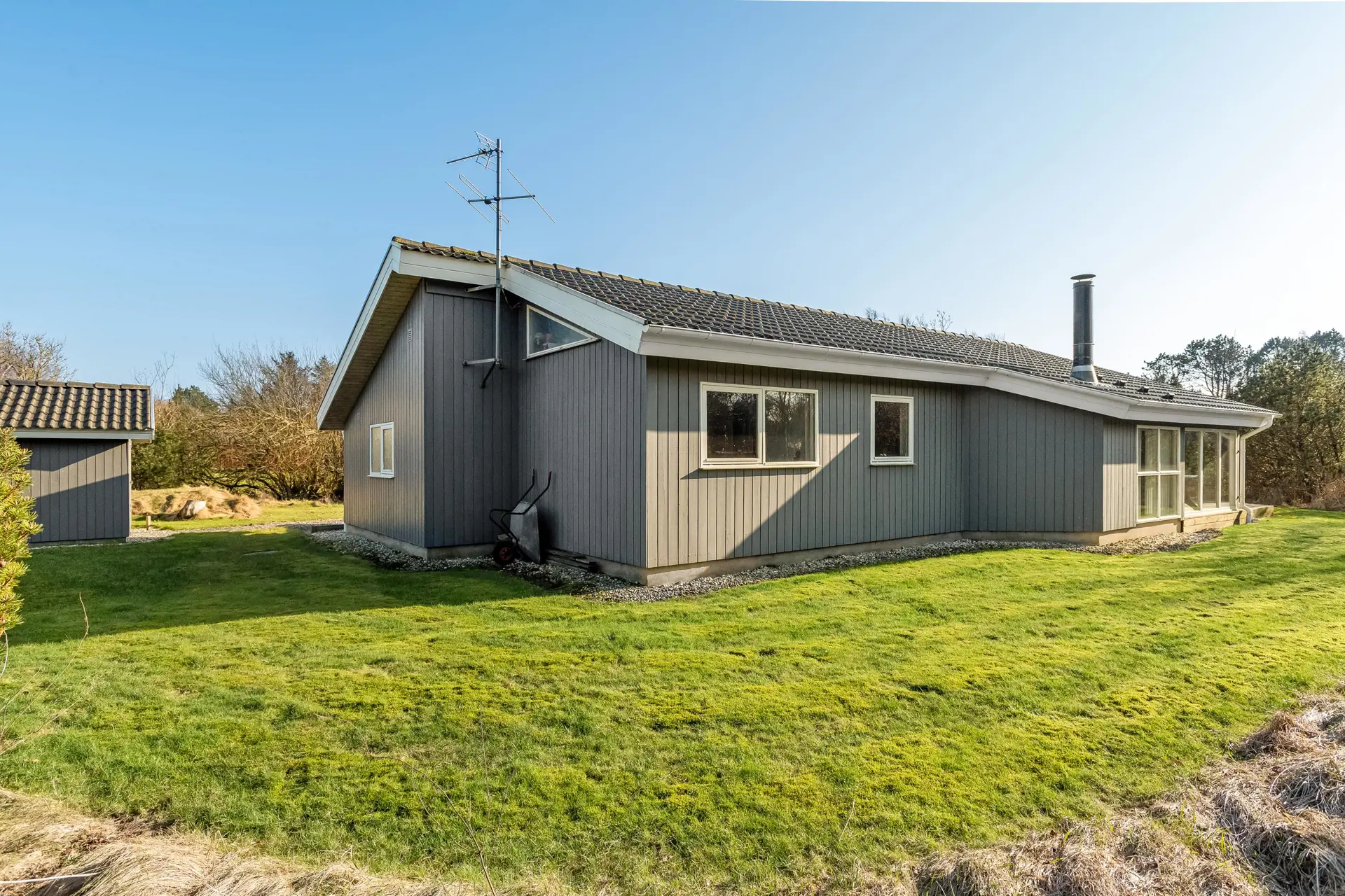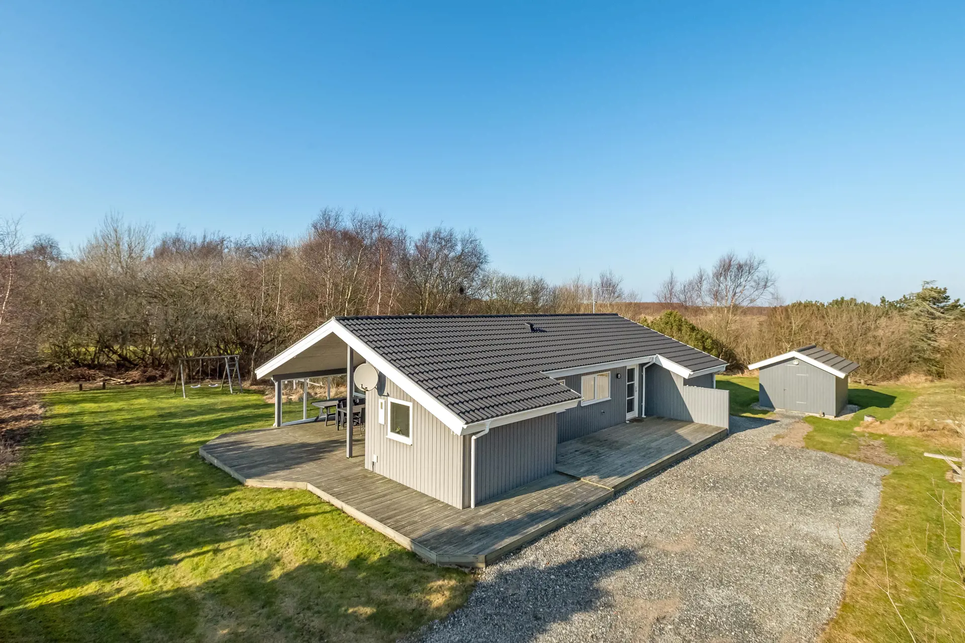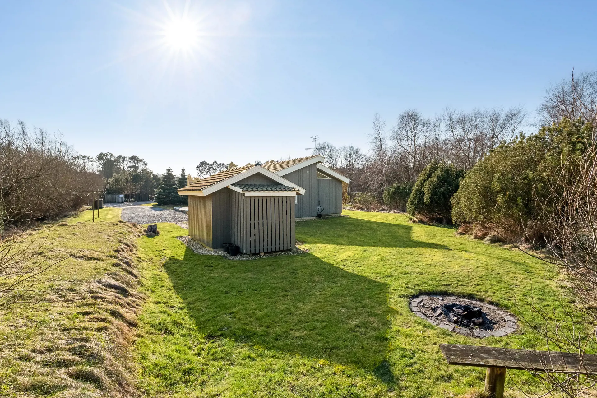 Das Ferienhaus liegt auf einem 2300 m² großen Naturgrundstück. Die Entfernung zur Nordsee beträgt etwa 2000 Meter und zum Fjord 600 Meter, während die nächste Einkaufsmöglichkeit nur 1000 Meter entfernt ist. Zum Haus gehört eine schöne Terrasse von 55 m² sowie eine überdachte Terrasse von 15 m². Auf dem Grundstück befinden sich außerdem ein Geräteraum, eine Schaukel, ein Sandkasten und eine Feuerstelle. Ein Grill steht zur Verfügung und es gibt Parkmöglichkeiten direkt am Haus.