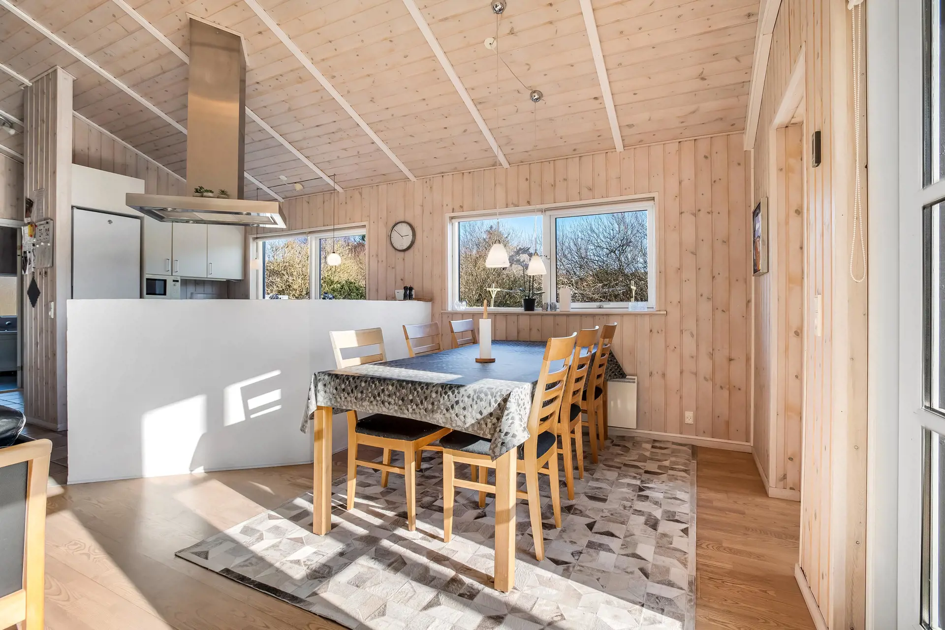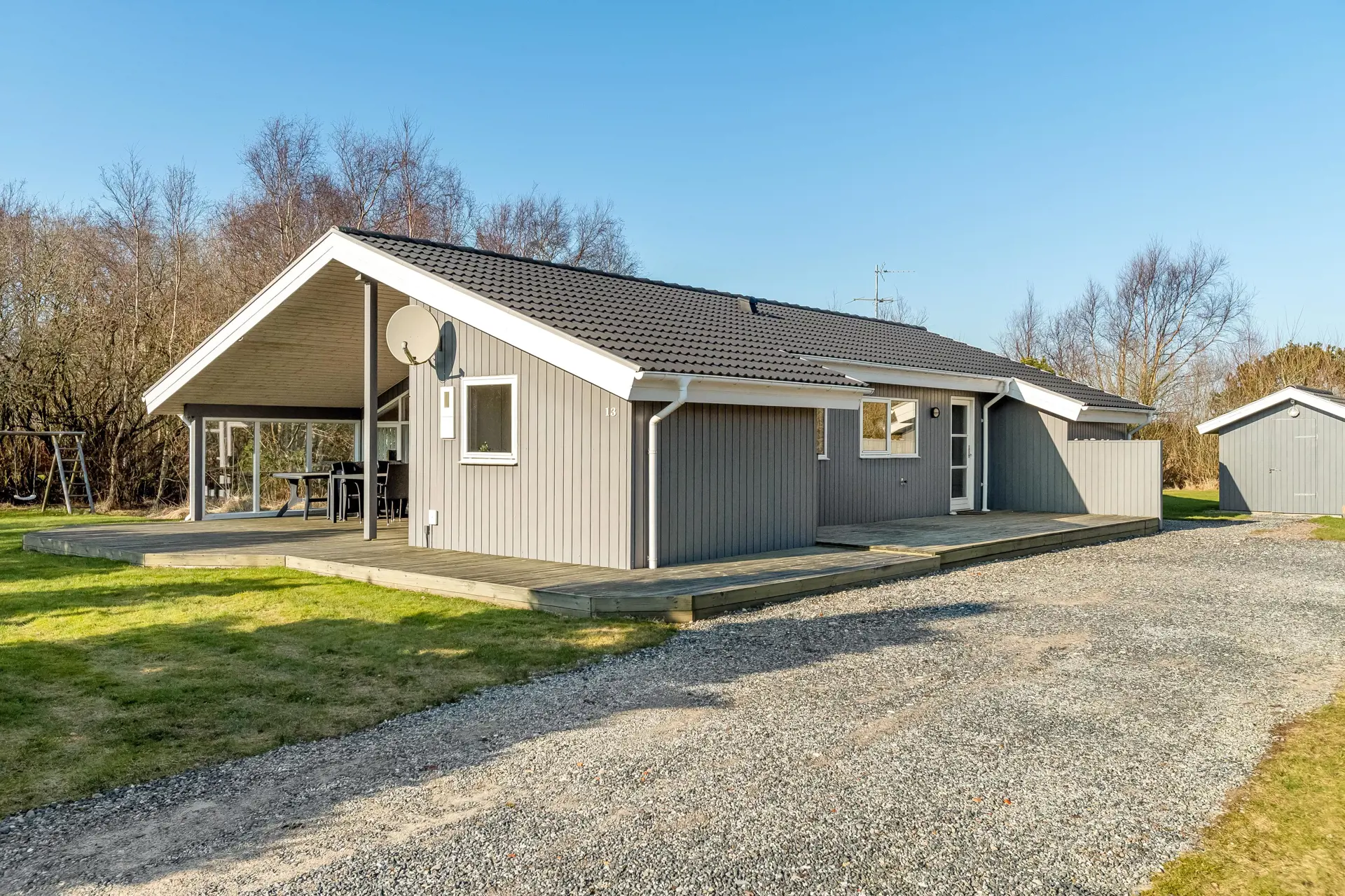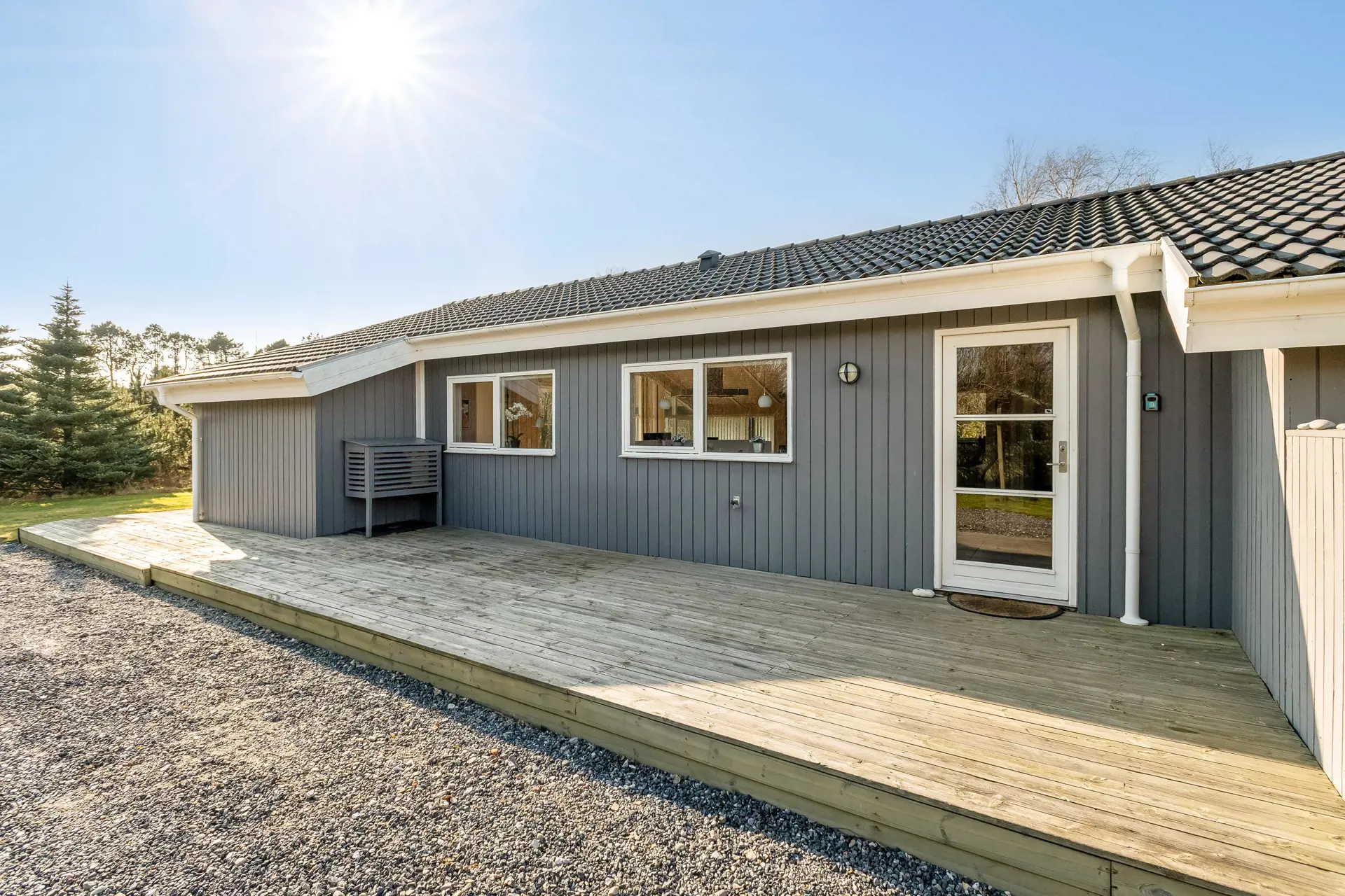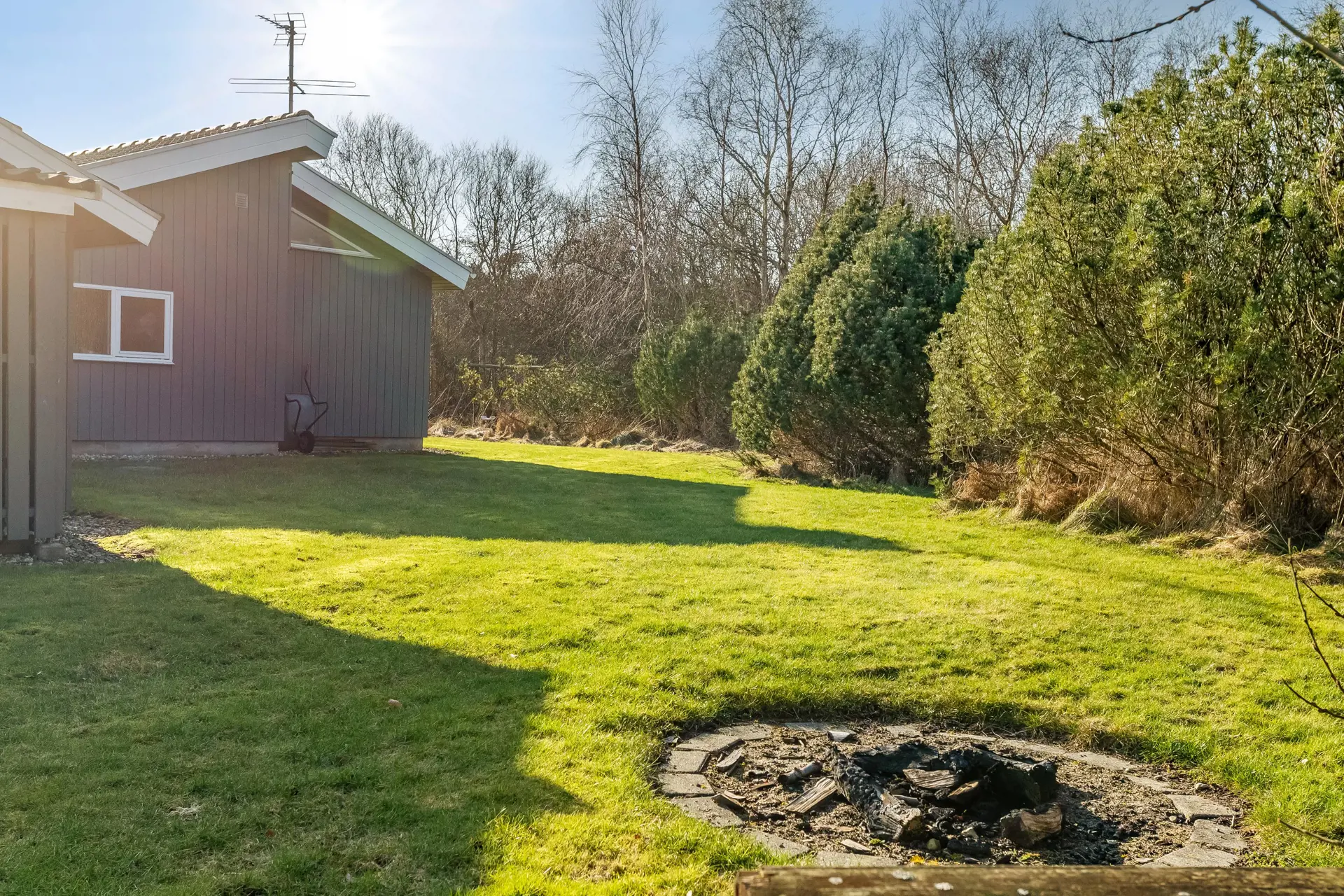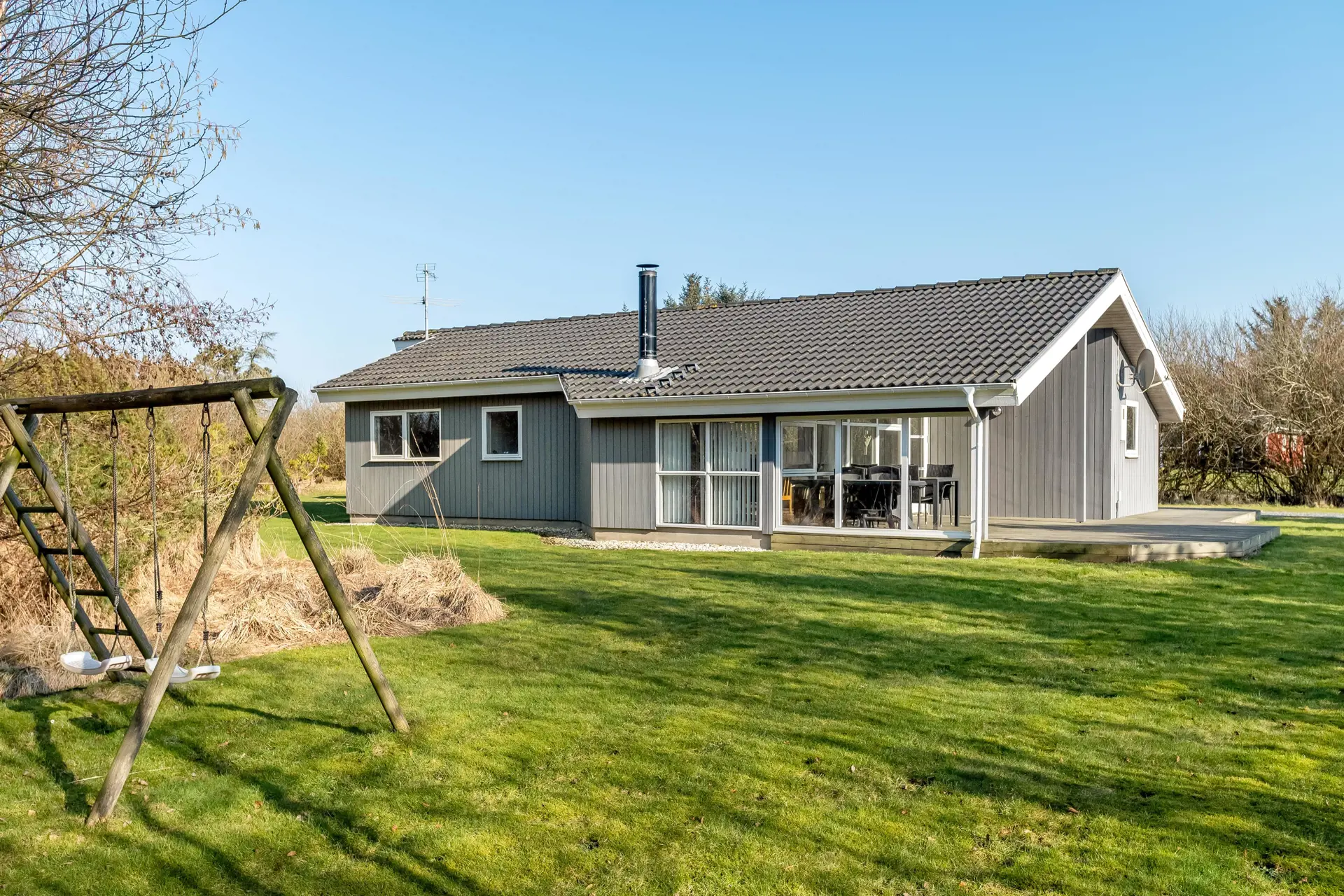 Das Ferienhaus liegt auf einem 2300 m² großen Naturgrundstück. Die Entfernung zur Nordsee beträgt etwa 2000 Meter und zum Fjord 600 Meter, während die nächste Einkaufsmöglichkeit nur 1000 Meter entfernt ist. Zum Haus gehört eine schöne Terrasse von 55 m² sowie eine überdachte Terrasse von 15 m². Auf dem Grundstück befinden sich außerdem ein Geräteraum, eine Schaukel, ein Sandkasten und eine Feuerstelle. Ein Grill steht zur Verfügung und es gibt Parkmöglichkeiten direkt am Haus.