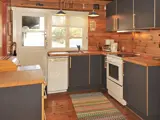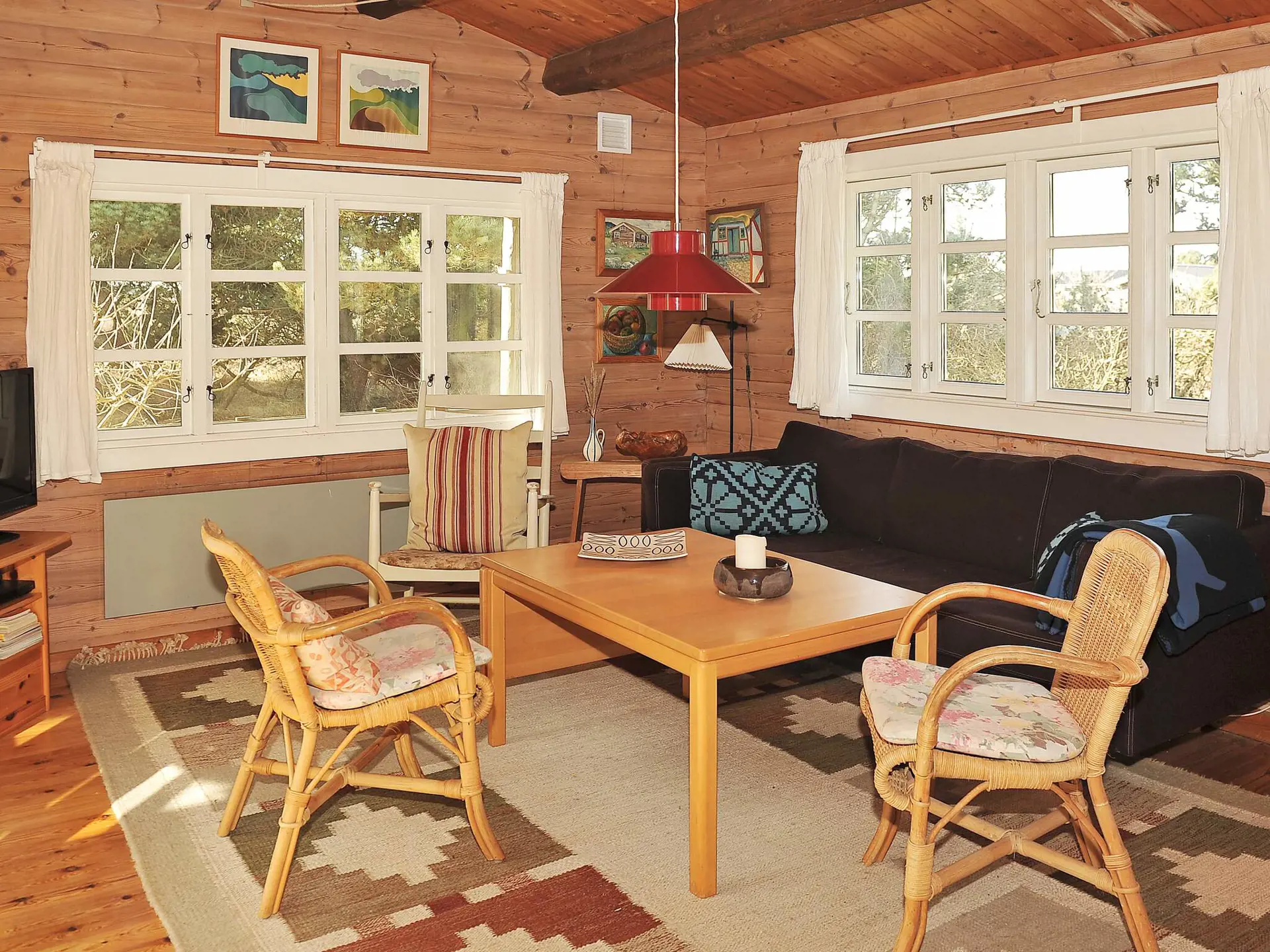 Neben der Küche und dem kombinierten Wohn- und Esszimmer ist das Ferienhaus mit drei Schlafzimmern und einem Badezimmer ausgestattet. Eines der Schlafzimmer ist mit einem Doppelbett eingerichtet, während in den beiden weiteren Schlafzimmer jeweils ein Etagenbett mit zwei Kojen bereitstehen.