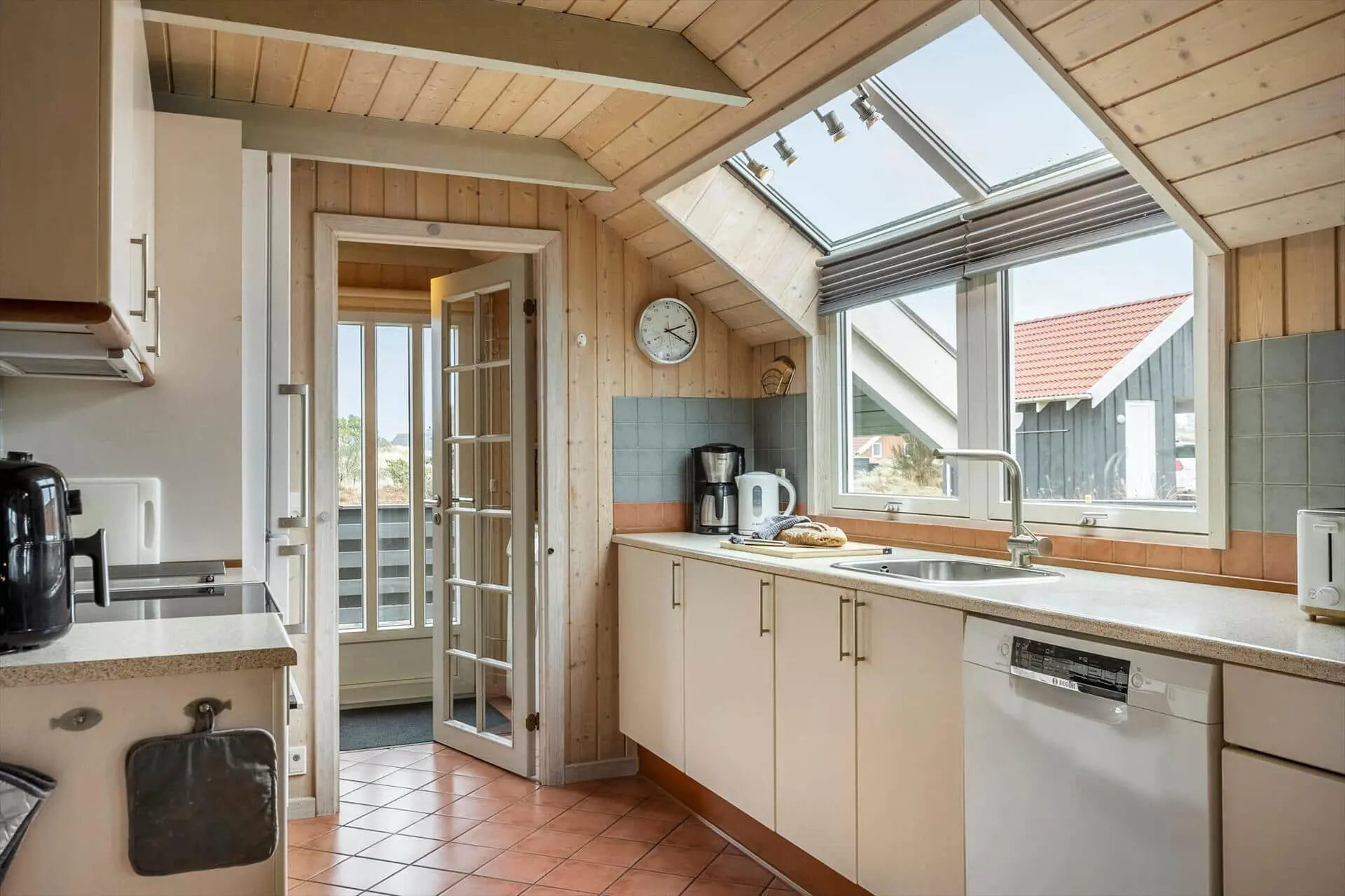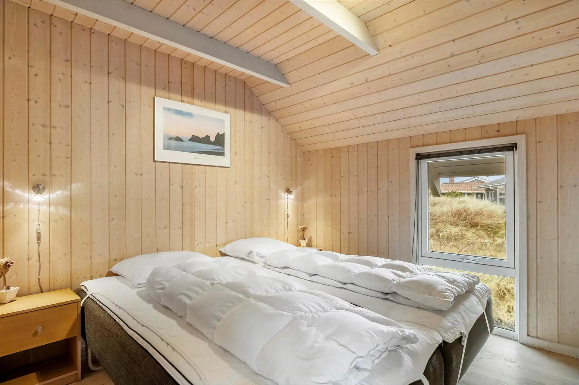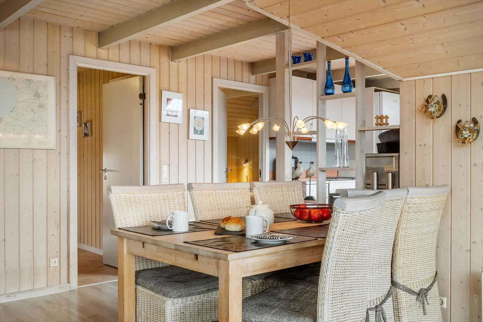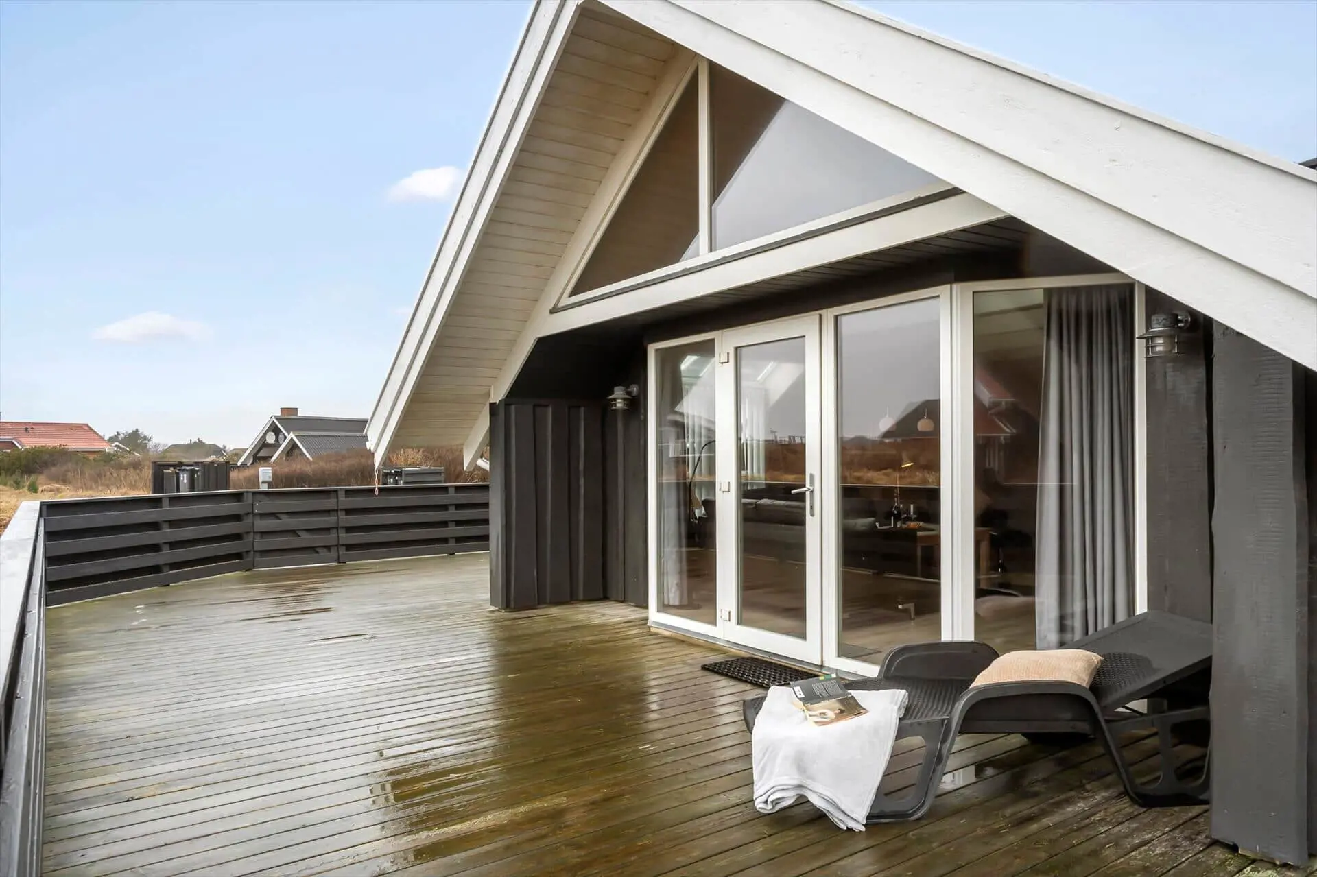 Treten Sie ein in die Gemütlichkeit und Ruhe dieses charmanten Ferienhauses, wo Materialien und Licht harmonisch zu einer warmen und behaglichen Atmosphäre verschmelzen. Zeitlose nordische Eleganz trifft hier auf modernen Komfort. Der offene Grundriss lädt zum geselligen Beisammensein ein, während das gemütliche Wohnzimmer mit Kaminofen und effizienter Heizung an kühlen Abenden für wohlige Wärme sorgt. Die gut ausgestattete Wohnküche bietet Platz für Familie und Freunde, und die funktionalen Schlafbereiche garantieren einen erholsamen Schlaf. Genießen Sie den weiten Blick durch die großen Fenster, die die Natur zum Greifen nah bringen, und öffnen Sie die Tür zur sonnigen Terrasse, wo Sie den Tag mit einer Tasse Kaffee beginnen oder mit einem Glas Wein ausklingen lassen können.