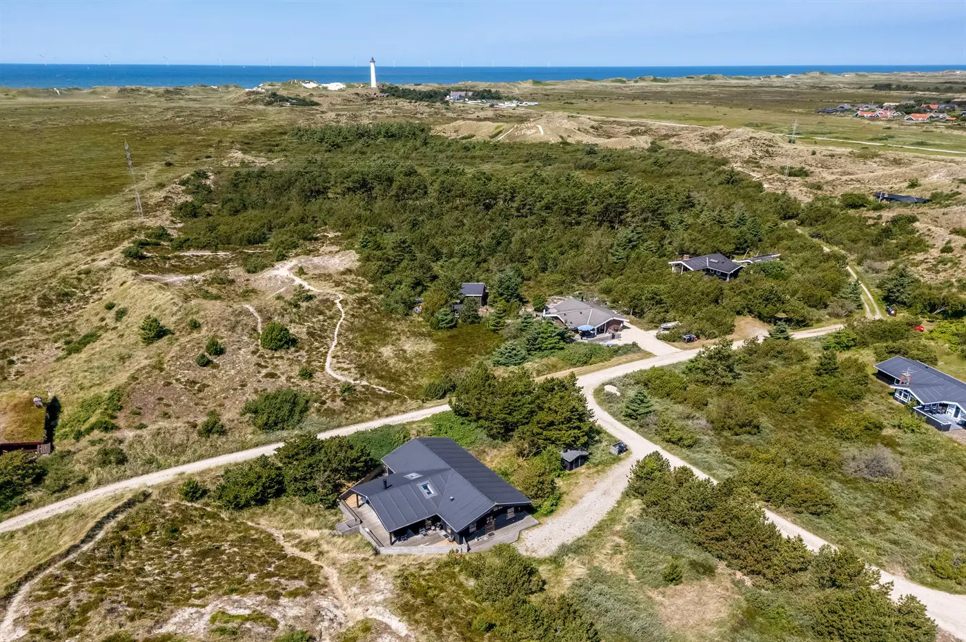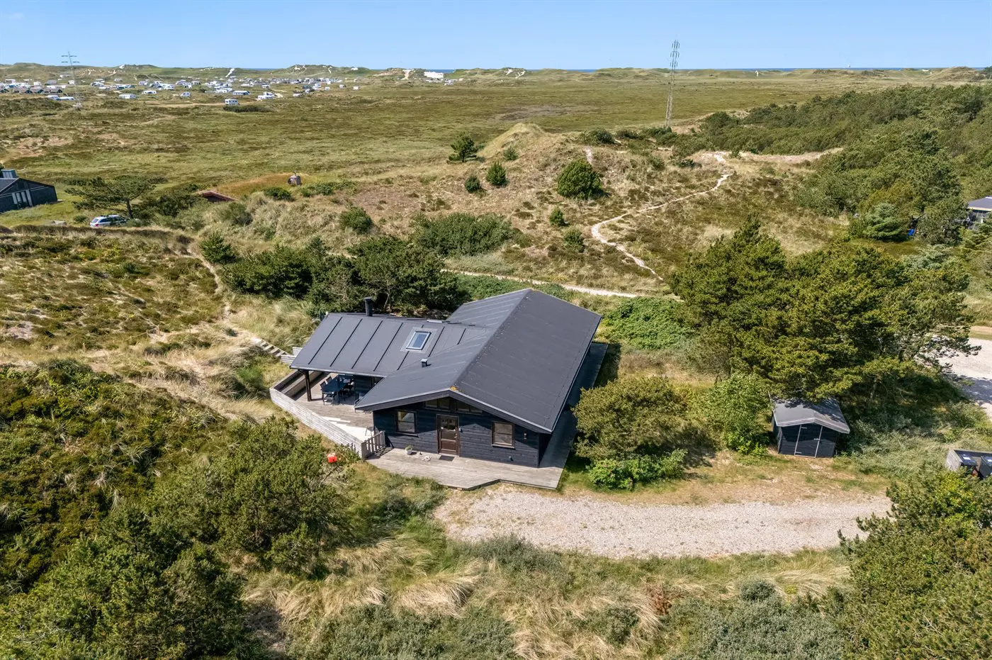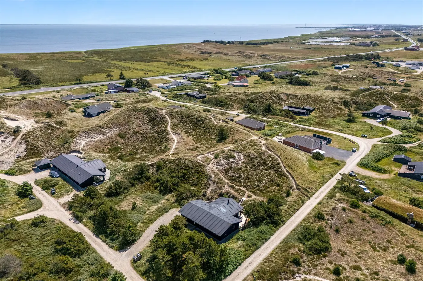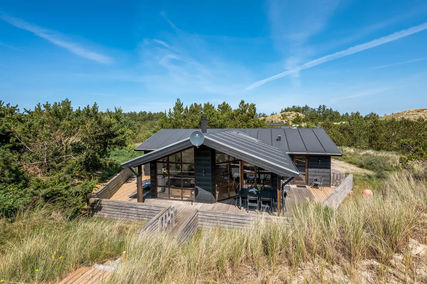 Im naturschönen Nr. Lyngvig zwischen dem Badeort Søndervig und dem Fischereiort Hvide Sande liegt dieses herrliche Luxusferienhaus, 2004 gebaut und 2014 völlig renoviert, auf einem herrlichen, leicht hügeligen Dünengrundstück - nur 800 m von der Nordsee entfernt. Zum Haus gehören schöne, ungestört gelegene Terrassen mit Gartenmöbeln. Von den Terrassen können Sie den Kindern beim Spielen zusehen. Vom Haus führt ein Pfad auf den Gipfel einer Düne hinauf - von der Sie die schöne Aussicht über die Landschaft genießen können. Innen gibt es gestrichene Wände. Holzböden, jedoch Klinkerboden im Flur, Waschküche und Badezimmern. Großes und schickes Badezimmer mit Fußbodenheizung, Duschnische, 2-Pers.-Whirlpool sowie Zutritt zur Sauna. Zusätzliches Badezimmer ebenfalls mit Fußbodenheizung und Duschnische. Die moderne und gut ausgestattete Küche enthält u.a. Geschirrspüler, Mikrowelle, Tiefkühlgerät, Umluftofen und Herd mit Ceran-Feld. Im hellen und geschmackvoll eingerichteten Wohnzimmer mit großer Fensterfront und Zutritt zur Terrasse finden Sie Kaminofen, Stereoanlage mit CD-Spieler, DVD-Spieler und 42” Flatscreen-TV mit digitalem Satellitenanschluss. Die Schlafplätze verteilen sich auf 4 gute Schlafzimmer, alle mit Doppelbett und gutem Schrankplatz. 2 der Zimmer haben ferner Zutritt zur Terrasse. An weiterer Ausstattung können Waschmaschine, Wäschetrockner, Kinderbett und Kinderhochstuhl erwähnt werden. Ausserdem steht kostenlose, kabellose Internetverbindung zur Verfügung. Es ist eine energiegerechte Wärmepumpe installiert, die auch als Aircondition funktioniert. Ein wirklich schönes Ferienhaus - in einem Gebiet mit guten Wander- und Aktivitätsmöglichkeiten.
