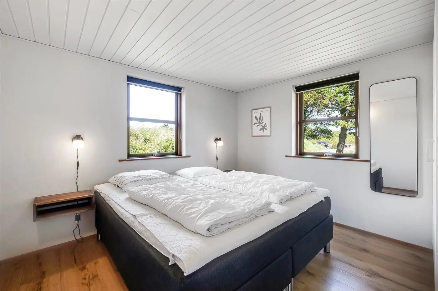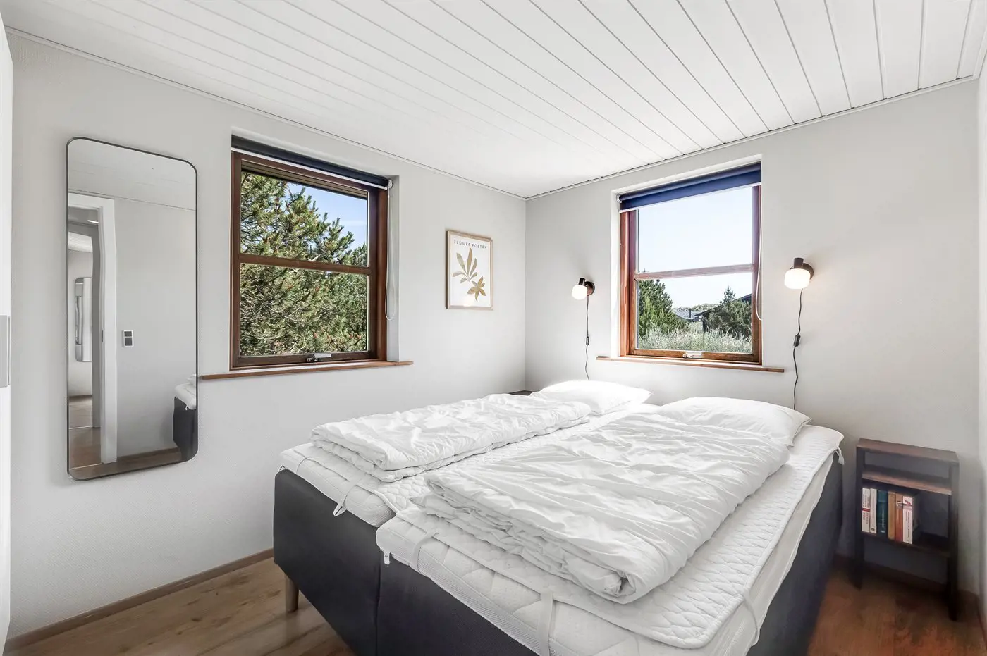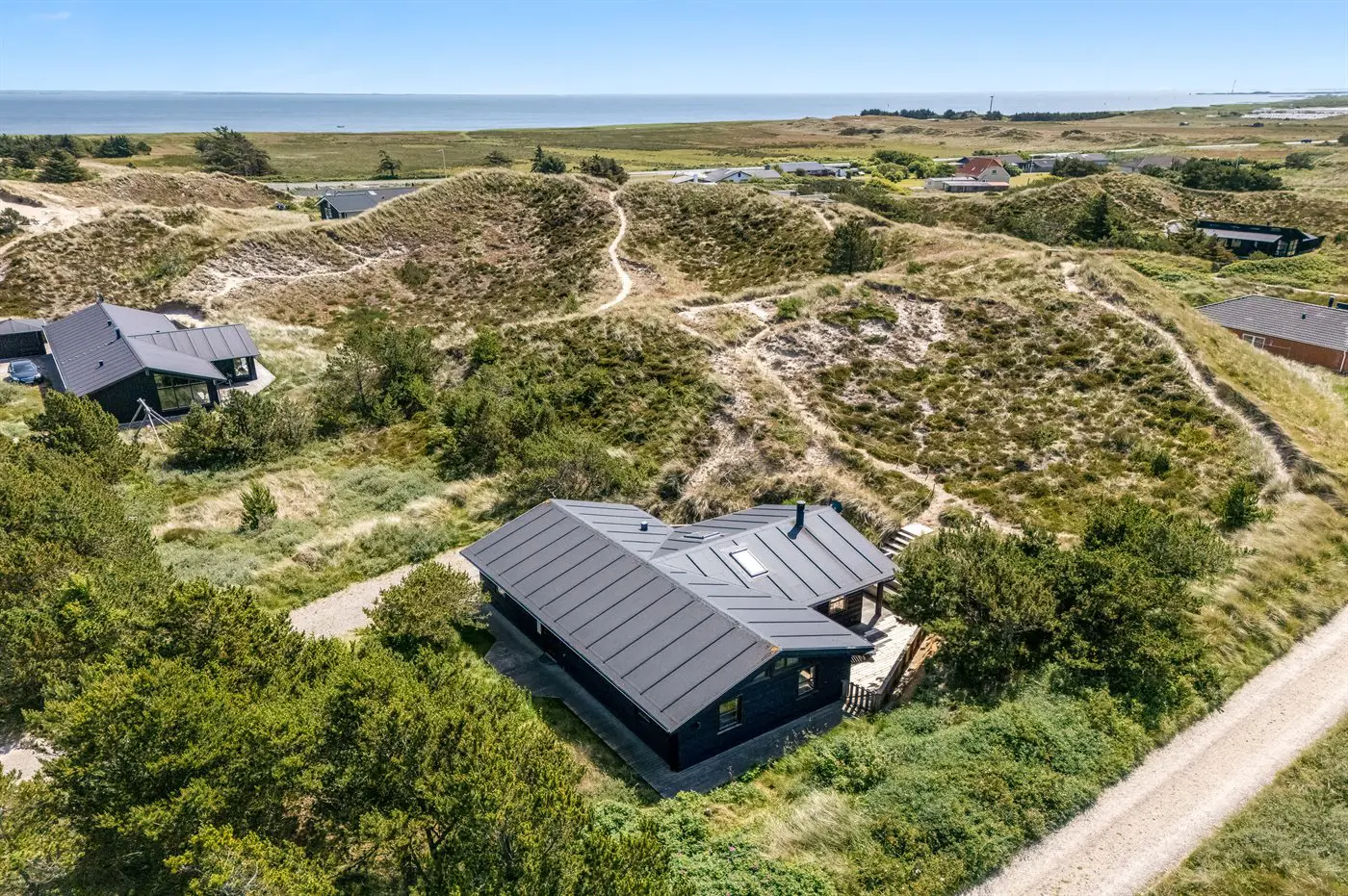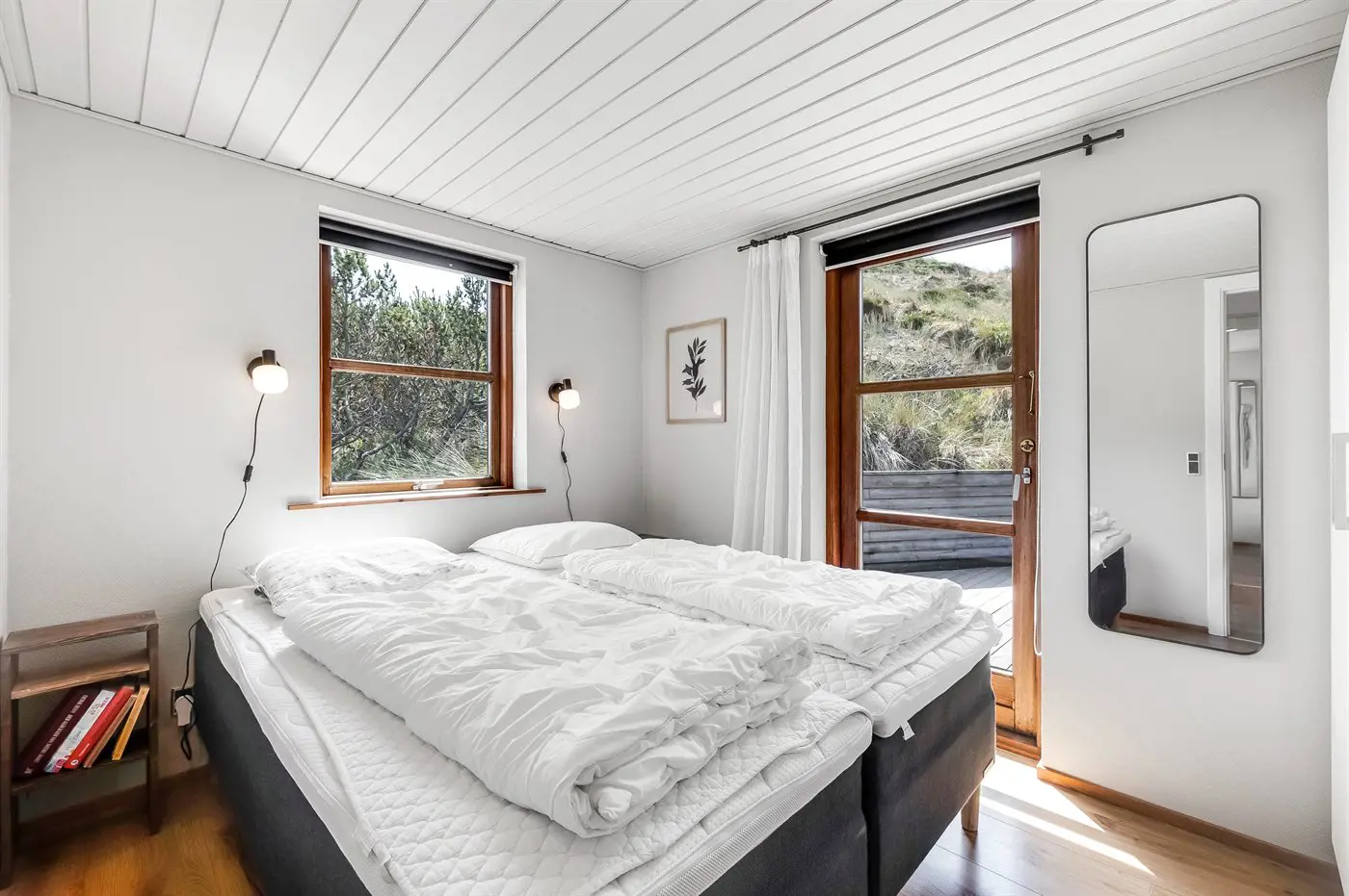 Im naturschönen Nr. Lyngvig zwischen dem Badeort Søndervig und dem Fischereiort Hvide Sande liegt dieses herrliche Luxusferienhaus, 2004 gebaut und 2014 völlig renoviert, auf einem herrlichen, leicht hügeligen Dünengrundstück - nur 800 m von der Nordsee entfernt. Zum Haus gehören schöne, ungestört gelegene Terrassen mit Gartenmöbeln. Von den Terrassen können Sie den Kindern beim Spielen zusehen. Vom Haus führt ein Pfad auf den Gipfel einer Düne hinauf - von der Sie die schöne Aussicht über die Landschaft genießen können. Innen gibt es gestrichene Wände. Holzböden, jedoch Klinkerboden im Flur, Waschküche und Badezimmern. Großes und schickes Badezimmer mit Fußbodenheizung, Duschnische, 2-Pers.-Whirlpool sowie Zutritt zur Sauna. Zusätzliches Badezimmer ebenfalls mit Fußbodenheizung und Duschnische. Die moderne und gut ausgestattete Küche enthält u.a. Geschirrspüler, Mikrowelle, Tiefkühlgerät, Umluftofen und Herd mit Ceran-Feld. Im hellen und geschmackvoll eingerichteten Wohnzimmer mit großer Fensterfront und Zutritt zur Terrasse finden Sie Kaminofen, Stereoanlage mit CD-Spieler, DVD-Spieler und 42” Flatscreen-TV mit digitalem Satellitenanschluss. Die Schlafplätze verteilen sich auf 4 gute Schlafzimmer, alle mit Doppelbett und gutem Schrankplatz. 2 der Zimmer haben ferner Zutritt zur Terrasse. An weiterer Ausstattung können Waschmaschine, Wäschetrockner, Kinderbett und Kinderhochstuhl erwähnt werden. Ausserdem steht kostenlose, kabellose Internetverbindung zur Verfügung. Es ist eine energiegerechte Wärmepumpe installiert, die auch als Aircondition funktioniert. Ein wirklich schönes Ferienhaus - in einem Gebiet mit guten Wander- und Aktivitätsmöglichkeiten.