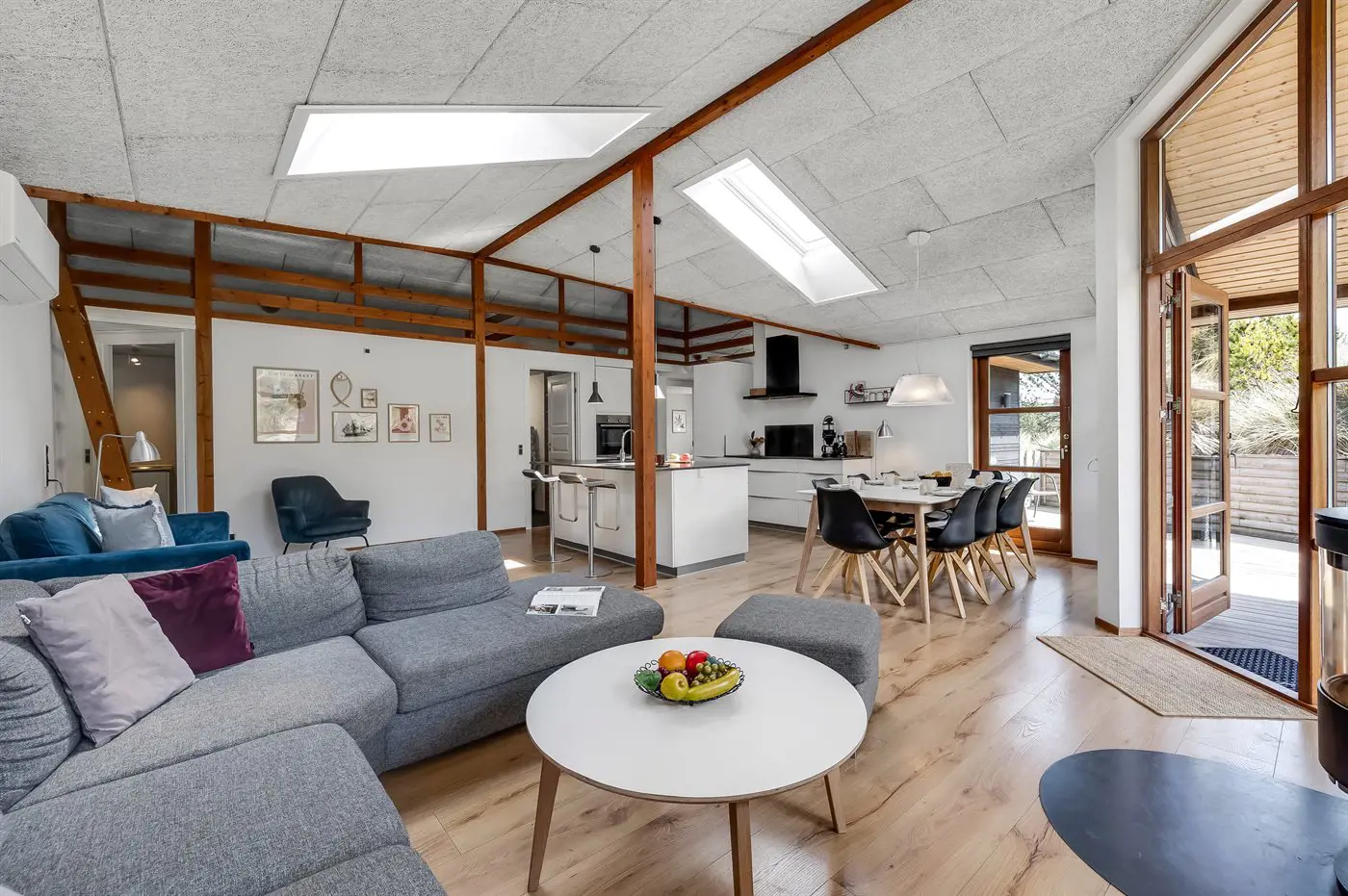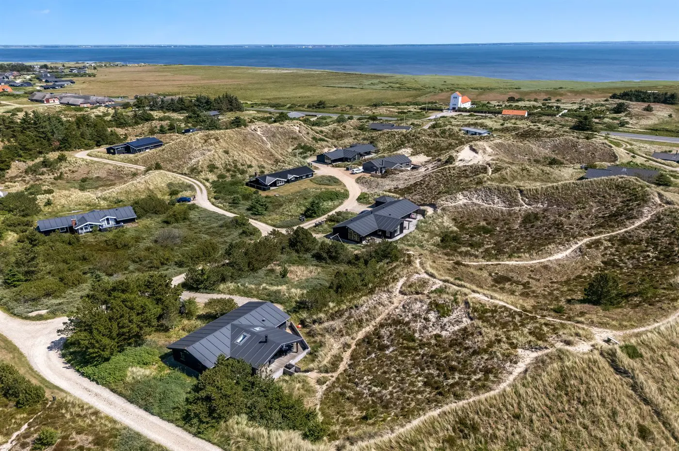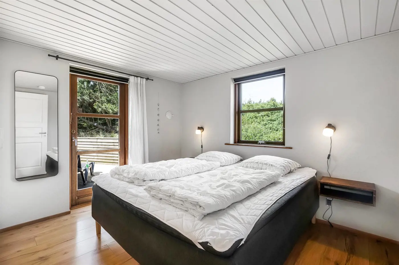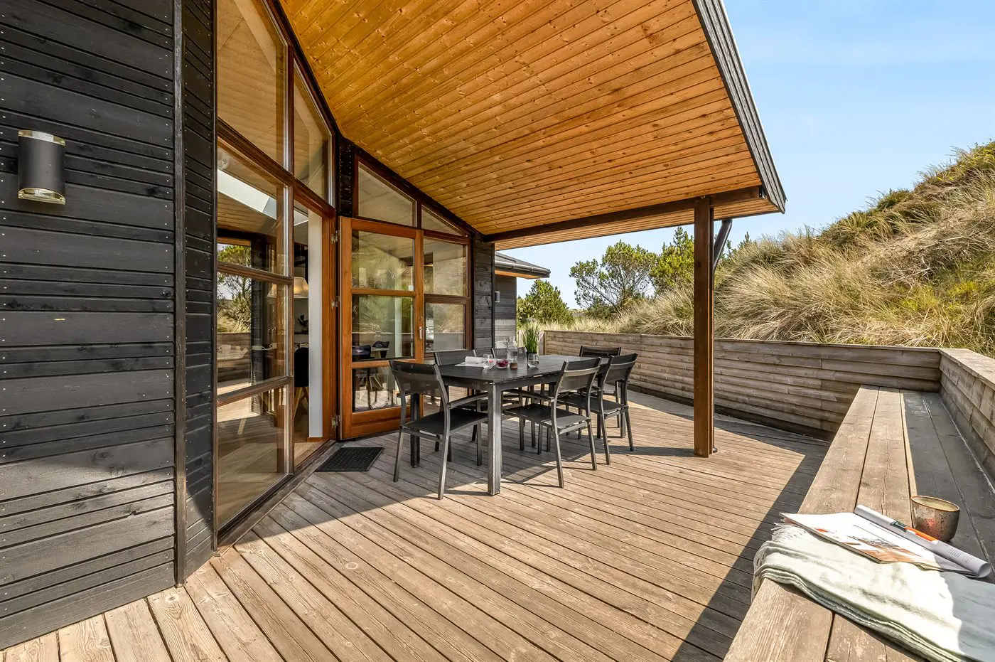 Im naturschönen Nr. Lyngvig zwischen dem Badeort Søndervig und dem Fischereiort Hvide Sande liegt dieses herrliche Luxusferienhaus, 2004 gebaut und 2014 völlig renoviert, auf einem herrlichen, leicht hügeligen Dünengrundstück - nur 800 m von der Nordsee entfernt. Zum Haus gehören schöne, ungestört gelegene Terrassen mit Gartenmöbeln. Von den Terrassen können Sie den Kindern beim Spielen zusehen. Vom Haus führt ein Pfad auf den Gipfel einer Düne hinauf - von der Sie die schöne Aussicht über die Landschaft genießen können. Innen gibt es gestrichene Wände. Holzböden, jedoch Klinkerboden im Flur, Waschküche und Badezimmern. Großes und schickes Badezimmer mit Fußbodenheizung, Duschnische, 2-Pers.-Whirlpool sowie Zutritt zur Sauna. Zusätzliches Badezimmer ebenfalls mit Fußbodenheizung und Duschnische. Die moderne und gut ausgestattete Küche enthält u.a. Geschirrspüler, Mikrowelle, Tiefkühlgerät, Umluftofen und Herd mit Ceran-Feld. Im hellen und geschmackvoll eingerichteten Wohnzimmer mit großer Fensterfront und Zutritt zur Terrasse finden Sie Kaminofen, Stereoanlage mit CD-Spieler, DVD-Spieler und 42” Flatscreen-TV mit digitalem Satellitenanschluss. Die Schlafplätze verteilen sich auf 4 gute Schlafzimmer, alle mit Doppelbett und gutem Schrankplatz. 2 der Zimmer haben ferner Zutritt zur Terrasse. An weiterer Ausstattung können Waschmaschine, Wäschetrockner, Kinderbett und Kinderhochstuhl erwähnt werden. Ausserdem steht kostenlose, kabellose Internetverbindung zur Verfügung. Es ist eine energiegerechte Wärmepumpe installiert, die auch als Aircondition funktioniert. Ein wirklich schönes Ferienhaus - in einem Gebiet mit guten Wander- und Aktivitätsmöglichkeiten.
