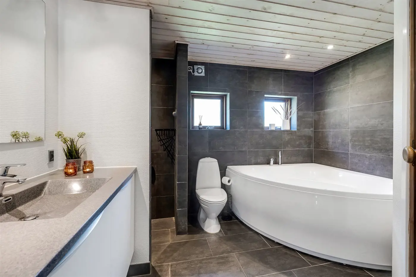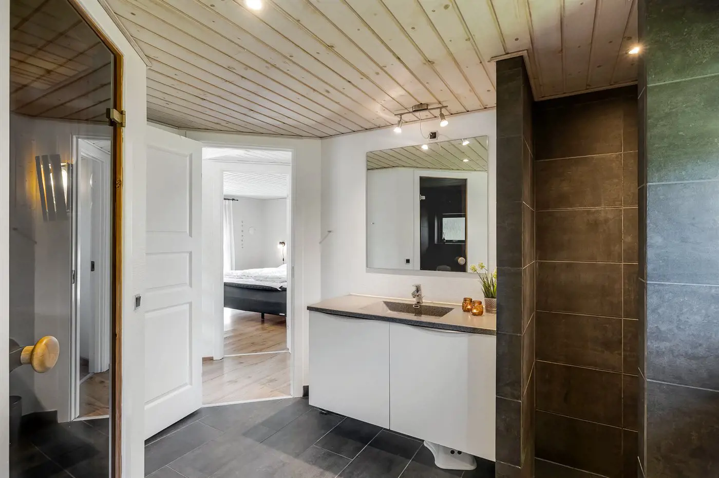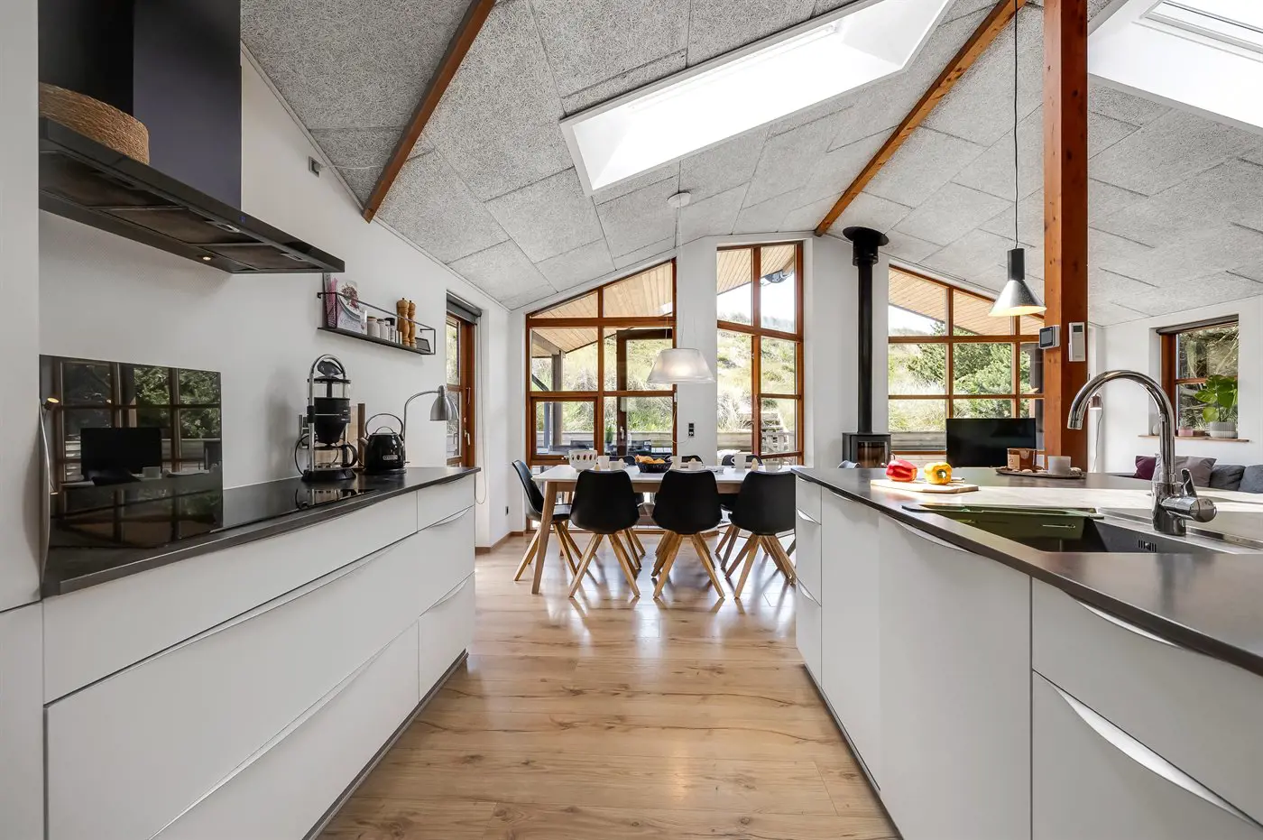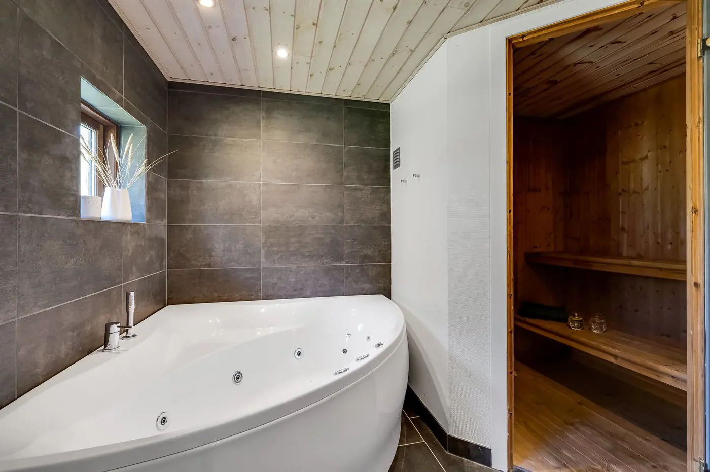 Im naturschönen Nr. Lyngvig zwischen dem Badeort Søndervig und dem Fischereiort Hvide Sande liegt dieses herrliche Luxusferienhaus, 2004 gebaut und 2014 völlig renoviert, auf einem herrlichen, leicht hügeligen Dünengrundstück - nur 800 m von der Nordsee entfernt. Zum Haus gehören schöne, ungestört gelegene Terrassen mit Gartenmöbeln. Von den Terrassen können Sie den Kindern beim Spielen zusehen. Vom Haus führt ein Pfad auf den Gipfel einer Düne hinauf - von der Sie die schöne Aussicht über die Landschaft genießen können. Innen gibt es gestrichene Wände. Holzböden, jedoch Klinkerboden im Flur, Waschküche und Badezimmern. Großes und schickes Badezimmer mit Fußbodenheizung, Duschnische, 2-Pers.-Whirlpool sowie Zutritt zur Sauna. Zusätzliches Badezimmer ebenfalls mit Fußbodenheizung und Duschnische. Die moderne und gut ausgestattete Küche enthält u.a. Geschirrspüler, Mikrowelle, Tiefkühlgerät, Umluftofen und Herd mit Ceran-Feld. Im hellen und geschmackvoll eingerichteten Wohnzimmer mit großer Fensterfront und Zutritt zur Terrasse finden Sie Kaminofen, Stereoanlage mit CD-Spieler, DVD-Spieler und 42” Flatscreen-TV mit digitalem Satellitenanschluss. Die Schlafplätze verteilen sich auf 4 gute Schlafzimmer, alle mit Doppelbett und gutem Schrankplatz. 2 der Zimmer haben ferner Zutritt zur Terrasse. An weiterer Ausstattung können Waschmaschine, Wäschetrockner, Kinderbett und Kinderhochstuhl erwähnt werden. Ausserdem steht kostenlose, kabellose Internetverbindung zur Verfügung. Es ist eine energiegerechte Wärmepumpe installiert, die auch als Aircondition funktioniert. Ein wirklich schönes Ferienhaus - in einem Gebiet mit guten Wander- und Aktivitätsmöglichkeiten.