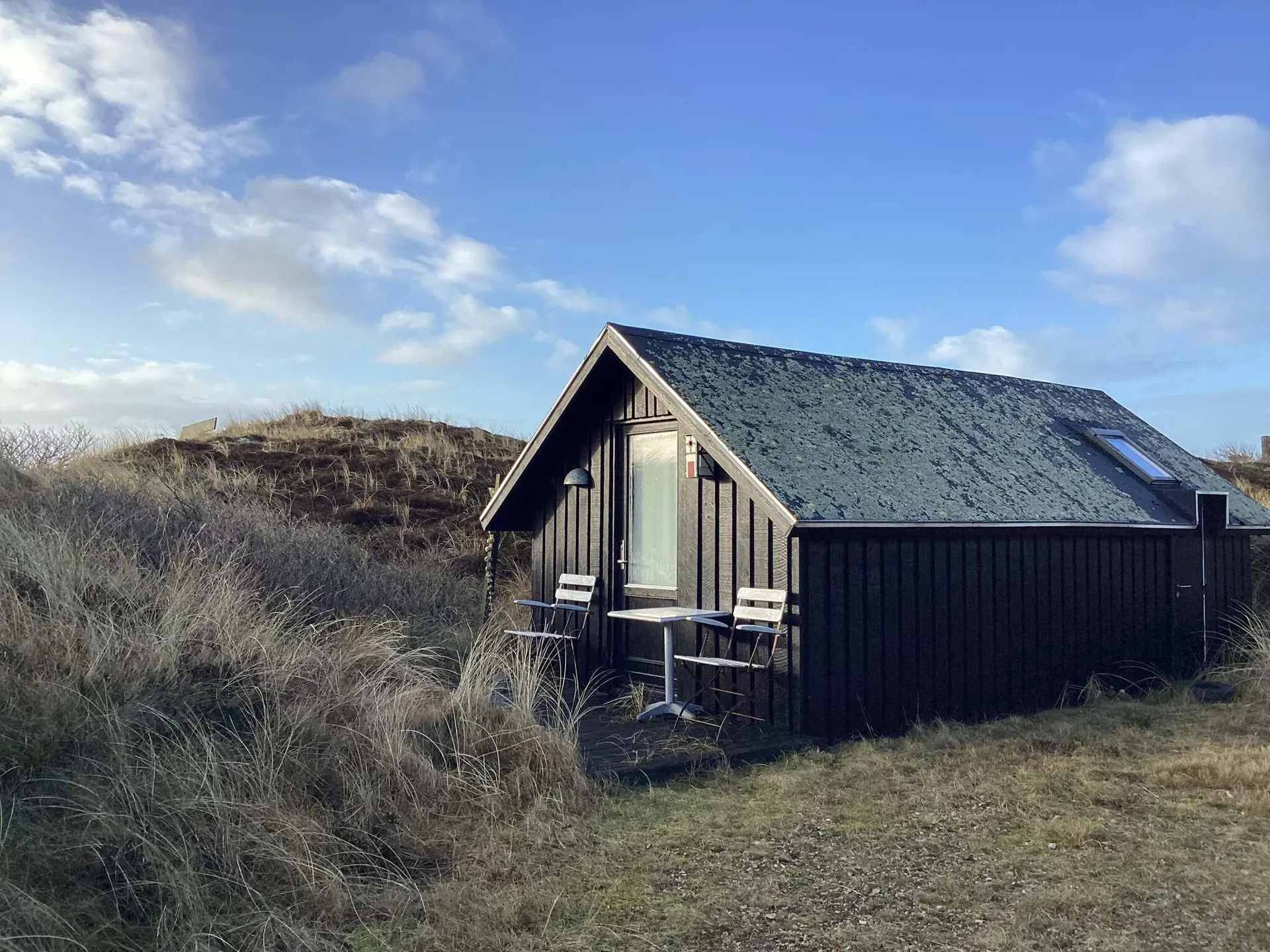 Das Ferienhaus für drei Personen liegt hoch oben auf einer Dünenkuppe und eine Treppe führt Sie nach oben zum Haus, nachdem Sie Ihr Auto unten geparkt haben.\