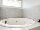 Im Ferinhaus findet man ansprechende Details sowie zwei hell und gut ausgestattete Badezimmer, eines davon mit Whirlpool für erholsame Stunden. Es gibt einen offenen Küchen-/Wohnbereich mit Essecke und Holzofen für kühlere Abende. Von dort hat man Zugang zur etwa 40 m2 großen, schön abgeschirmten und gefliesten Innenhof, der nach Süden ausgerichtet ist. Ein idealer Ruheort für sonnige Tage und Sommerabende. Es gibt zudem vier Schlafzimmer im Haus, eines mit direktem Zugang zu einer Terrassenfläche mit Morgensonne. Zur Unterhaltung stehen im Haus TV mit diversenden deutschen Sendern sowie Chromecast zum Streamen bereit.