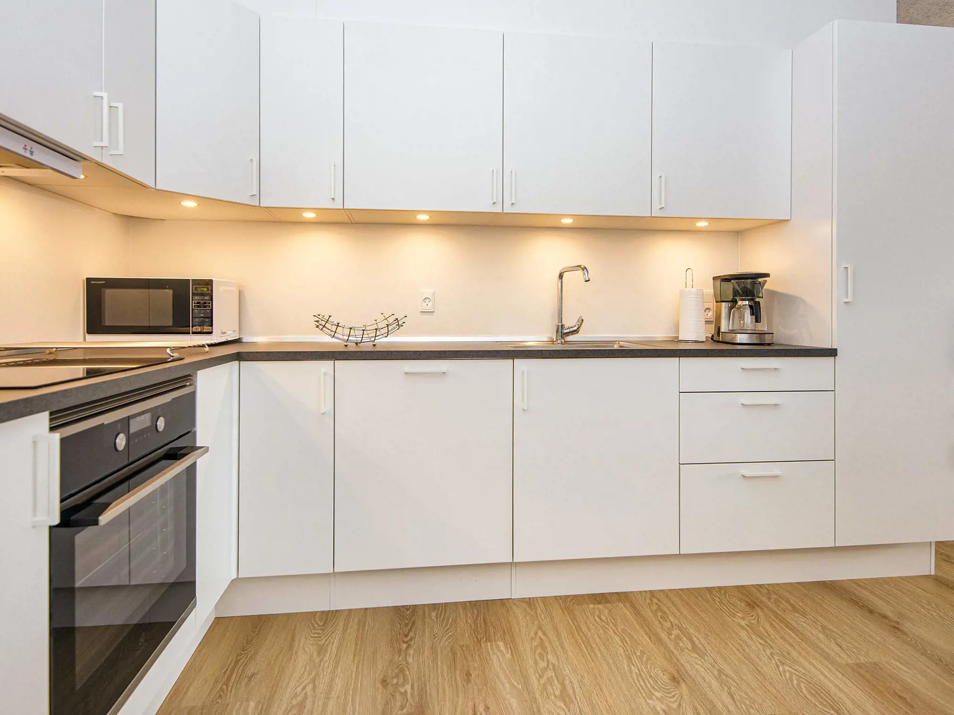 Beheizt wird die Wohnung mit einer Fußbodenheizung die an eine klimafreundliche Wasser/Luft-Wärmepumpe angeschlossen ist. Zum Resort Klitten gehört auch ein privater Parkplatz mit Schranke.