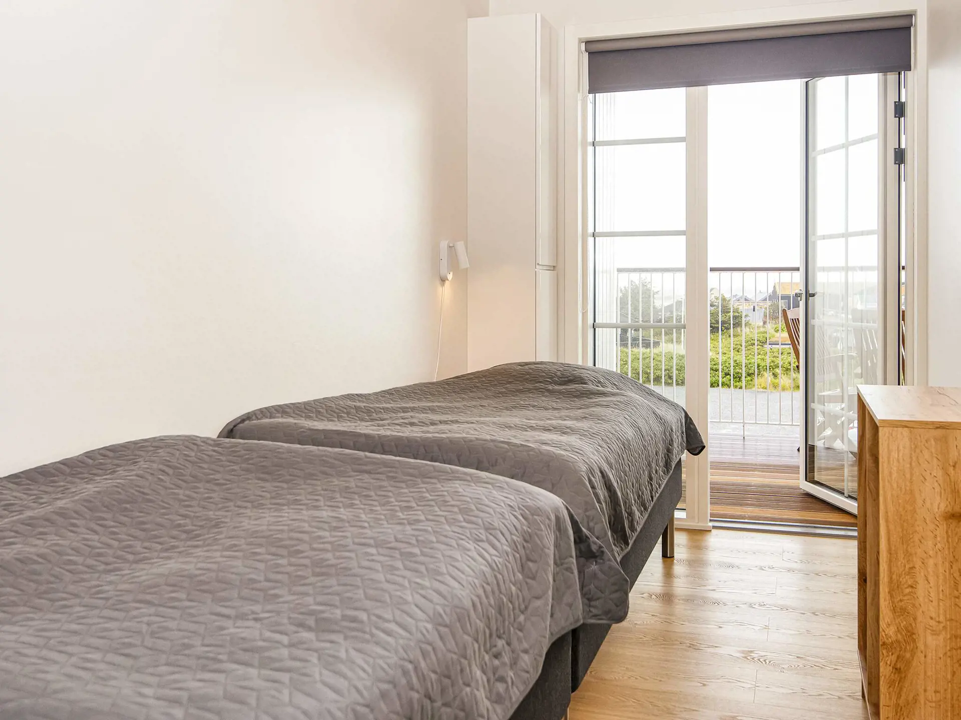 Die Wohnung hat einen Balkon mit schönem Ausblick zur Dünenlandschaft sowie eine nach Osten ausgerichtete Terrassenfläche für das Frühstück in der Morgensonne.