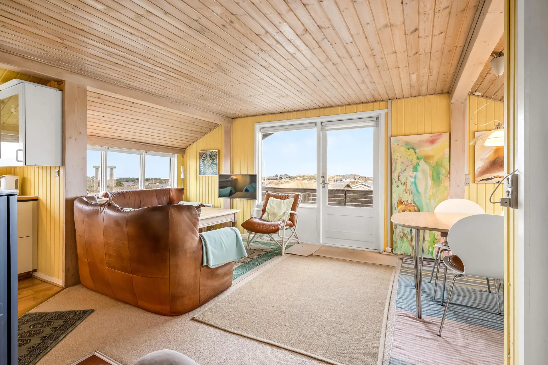 Wenn die Lage für Sie das Wichtigste ist, wird dieses gemütliche Ferienhaus in der Nordsøvej 140 in Søndervig ganz sicher Ihren Geschmack treffen. Das Ferienhaus bietet Platz für vier Personen und liegt einzigartig auf der Spitze einer Düne in erster Reihe zur Nordsee. Von hier aus genießen Sie sowohl Meerblick als auch eine beeindruckende Aussicht über die hügelige Dünenlandschaft. Der breite Sandstrand ist in wenigen Minuten erreichbar – nur 200 Meter vom Haus entfernt – und das lebhafte Zentrum von Søndervig erreichen Sie in etwa 10 Gehminuten. Bitte beachten Sie, dass der Zugang zum Haus über 33 Stufen vom Parkplatz erfolgt.