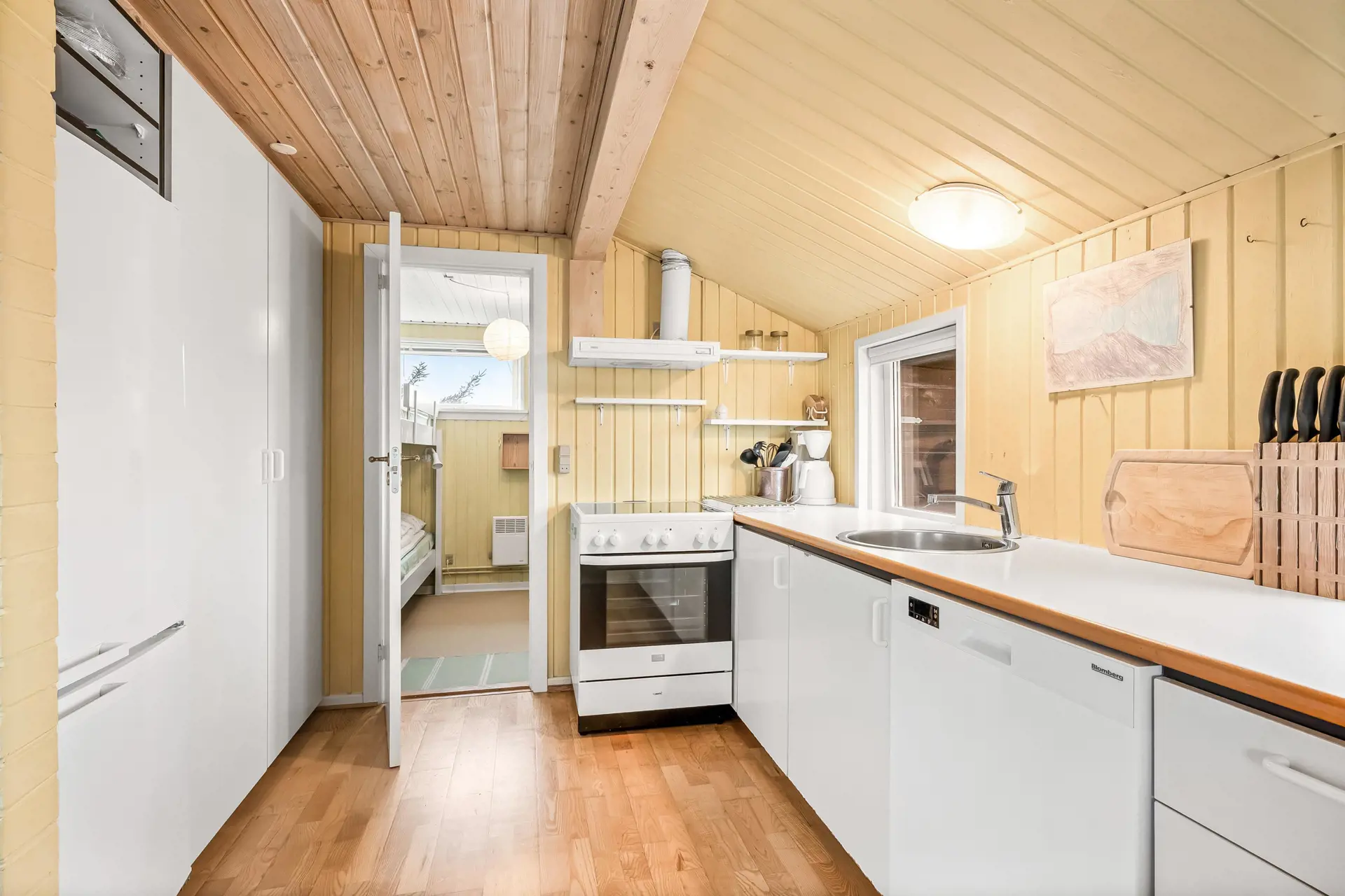 Das Ferienhaus ist im klassischen und charmanten Ferienhausstil eingerichtet und bietet einen behaglichen Rahmen für einen erholsamen Urlaub mit bis zu vier Personen. Das zentrale Wohn- und Esszimmer mit integrierter Küche bildet das Herzstück des Hauses und lädt zu entspannten Urlaubstagen und gemütlichen Abenden vor dem knisternden Kaminofen ein. Das Haus strahlt viel Atmosphäre und Charakter aus und bietet ideale Voraussetzungen für Ruhe, Nähe und Entspannung.