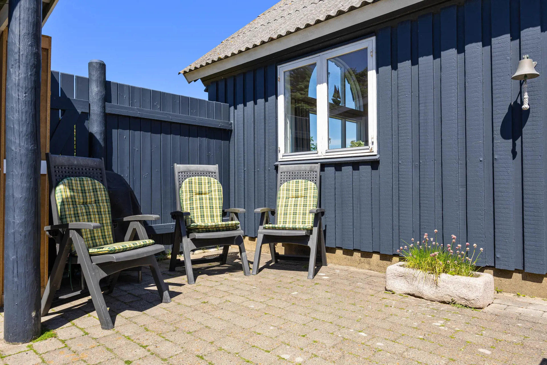 In der Küche könnt ihr gemeinsam ein leckeres Essen zubereiten oder auf der geschlossenen Terrasse grillen. Die Gartenmöbel laden zum Verweilen und Entspannen unter freiem Himmel ein. Die Kinder können auf dem Rasen spielen oder ein Picknick veranstalten. Direkt am Eingang des Ferienhauses liegt die zweite, offene Terrasse.