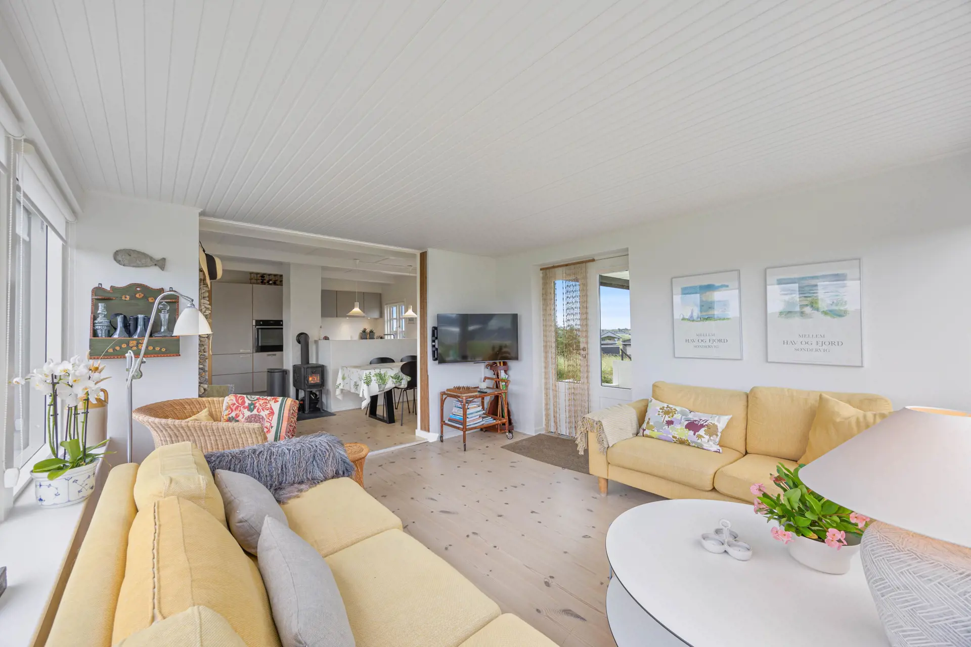 Das Ferienhaus bietet neben einem offenen Wohnkonzept auch einen großzügigen Außenbereich. Die offene Terrasse lädt zum Sonnenbaden ein, während der überdachte Teil der Terrasse euch einen geschützten Ort bietet, um die frische Seeluft bei einem guten Buch oder einem Kaltgetränk zu genießen. Gartenmöbel stehen bereit, damit ihr die milden Sommerabende im Freien verbringen könnt.