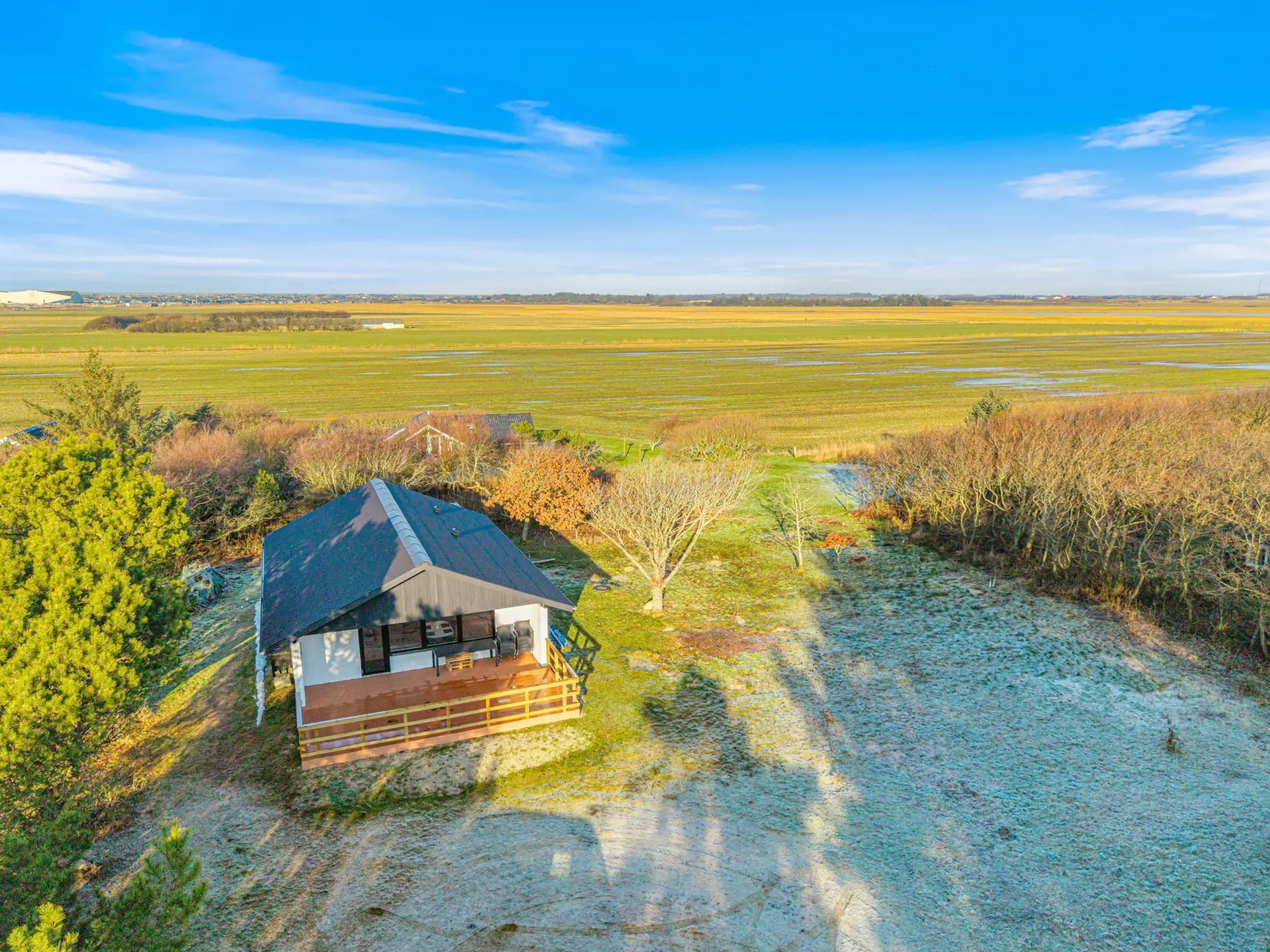 Das Ferienhaus erstreckt sich auf einem 2000 Quadratmeter großen Rasengrundstück, das ausreichend Platz bietet, um die frische Meeresluft zu genießen. Die Kombination aus offener und überdachter Terrasse bietet für jede Wetterlage den passenden Platz und lädt dazu ein, auf den vorhandenen Gartenmöbeln, die Seele baumeln zu lassen. Am Abend macht ihr den Grill an und genießt eure zubereiteten Köstlichkeiten und lasst bei einem Kaltgetränk in Ruhe den Tag ausklingen.