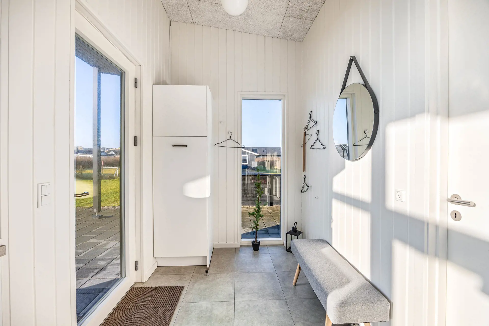 Vier Schlafzimmer, von denen drei mit Doppelbetten und eines mit zwei Einzelbetten ausgestattet sind, bieten genug Rückzugsorte um nach einem langen Tag an der frischen Luft, ins Land der Träume zu versinken. Zwei Badezimmer stehen ebenfalls zur Verfügung, was natürlich sehr praktisch ist, wenn mit zwei Familien Urlaub macht. Die Fußbodenheizung in beiden Badezimmern sorgt für angenehme Wärme und lässt das Thema „kalte Füße am Morgen ”nicht aufkommen. Genießt die hauseigene Sauna und entspannt euch nach einem erlebnisreichen Tag und ladet Körper und Geist wieder auf. Damit der Packstress vor der Anreise reduziert wird, stehen euch im Ferienhaus eine Waschmaschine und ein Trockner zur Verfügung.