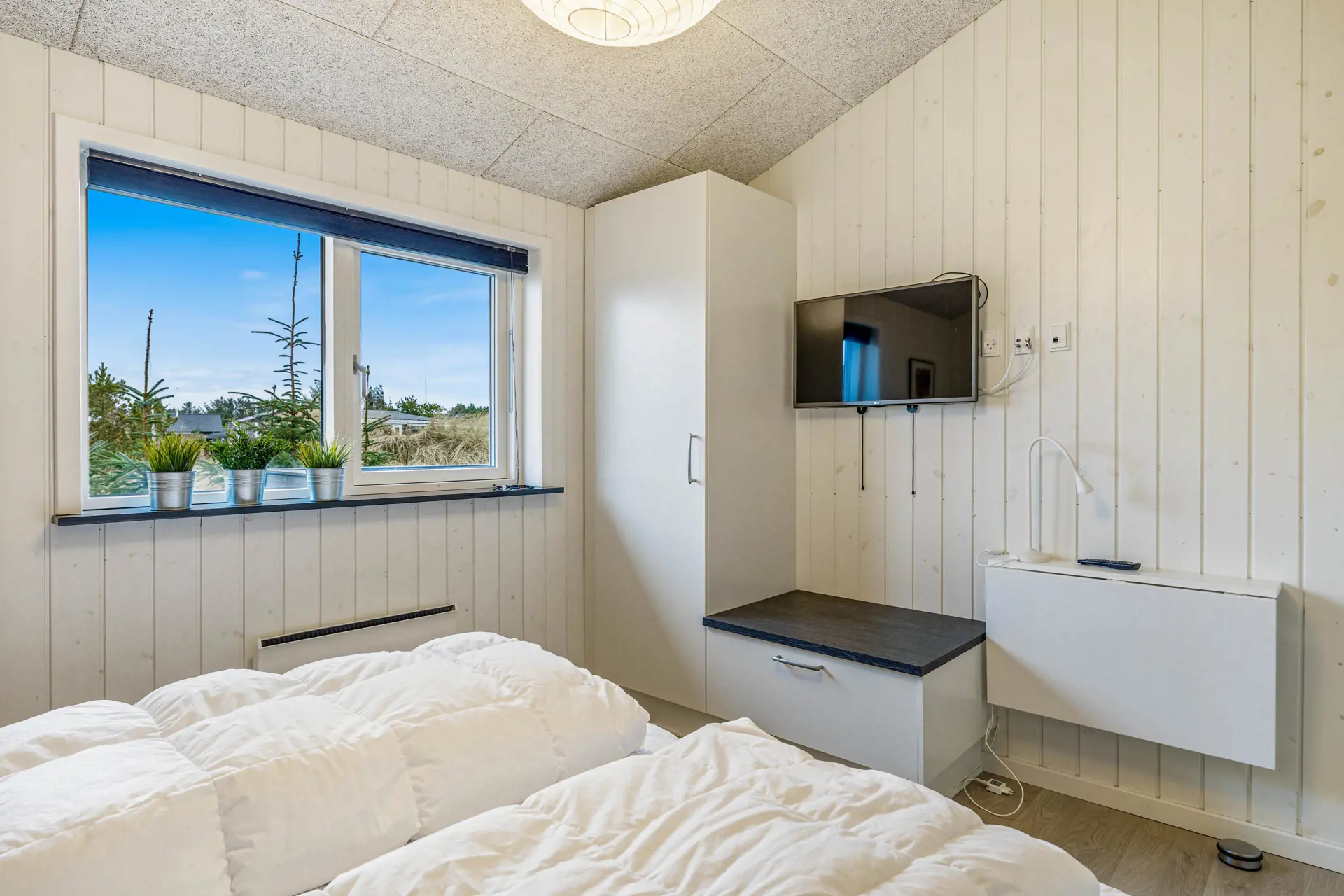 Zurückgezogen nach einem langen Tag erwartet euch in einem der drei Schlafzimmer ein erholsamer Schlaf. Ein Schlafzimmer ist mit einem Doppelbett ausgestattet, während die anderen zwei jeweils über zwei Einzelbetten verfügen. Hier findet jeder seinen persönlichen Rückzugsort. Für einen angenehmen Start in den Tag sorgen die beiden Badezimmer mit Fußbodenheizung. Nach einem ereignisreichen Tag am Strand könnt ihr in der Sauna oder im Whirlpool entspannen. Ein weiterer Pluspunkt der Unterkunft ist die vorhandene Waschmaschine und der Trockner, sodass ihr nur eure Lieblingskleidung einpacken müsst.