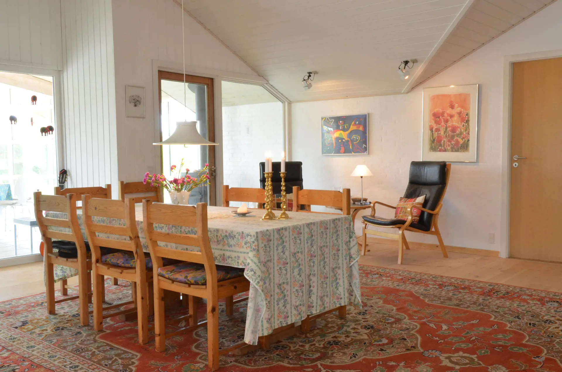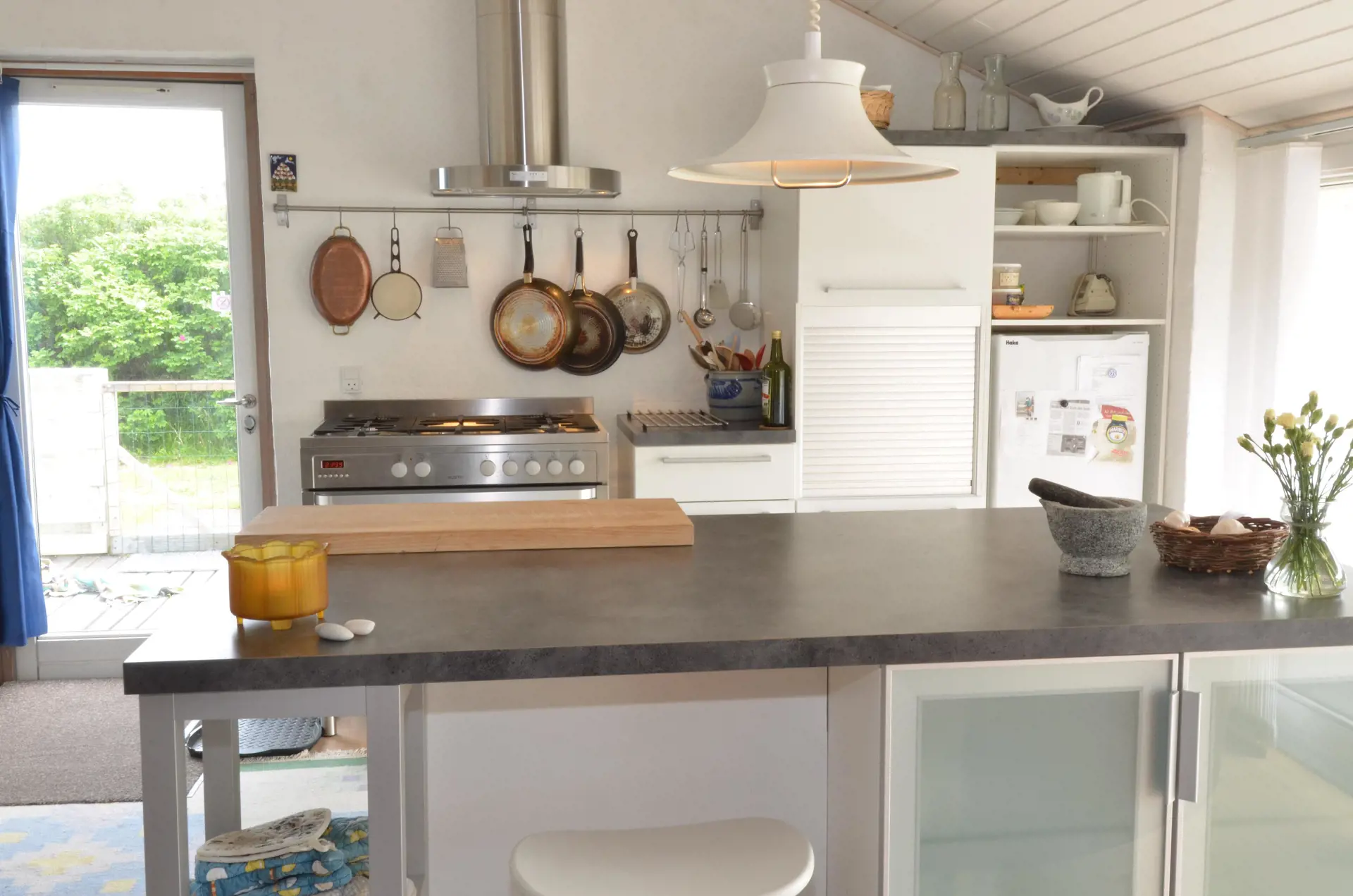 Dieses Ferienhaus in Søndervig lässt keine Wünsche offen. Ihr werdet von einem offenen Wohnkonzept begrüßt. Hier könnt ihr in der gut ausgestatteten Küche gemeinsam kochen und im Anschluss der Spülmaschine den Abwasch überlassen. Am Esstisch werden die Pläne für die nächsten Tage gemacht oder bei einem Spieleabend der Kartenchampion gekürt. Der Holzofen trägt an kühleren Abenden zur Gemütlichkeit bei und die energiesparende Wärmepumpe sorgt für ein konstantes Raumklima im Wohnbereich.