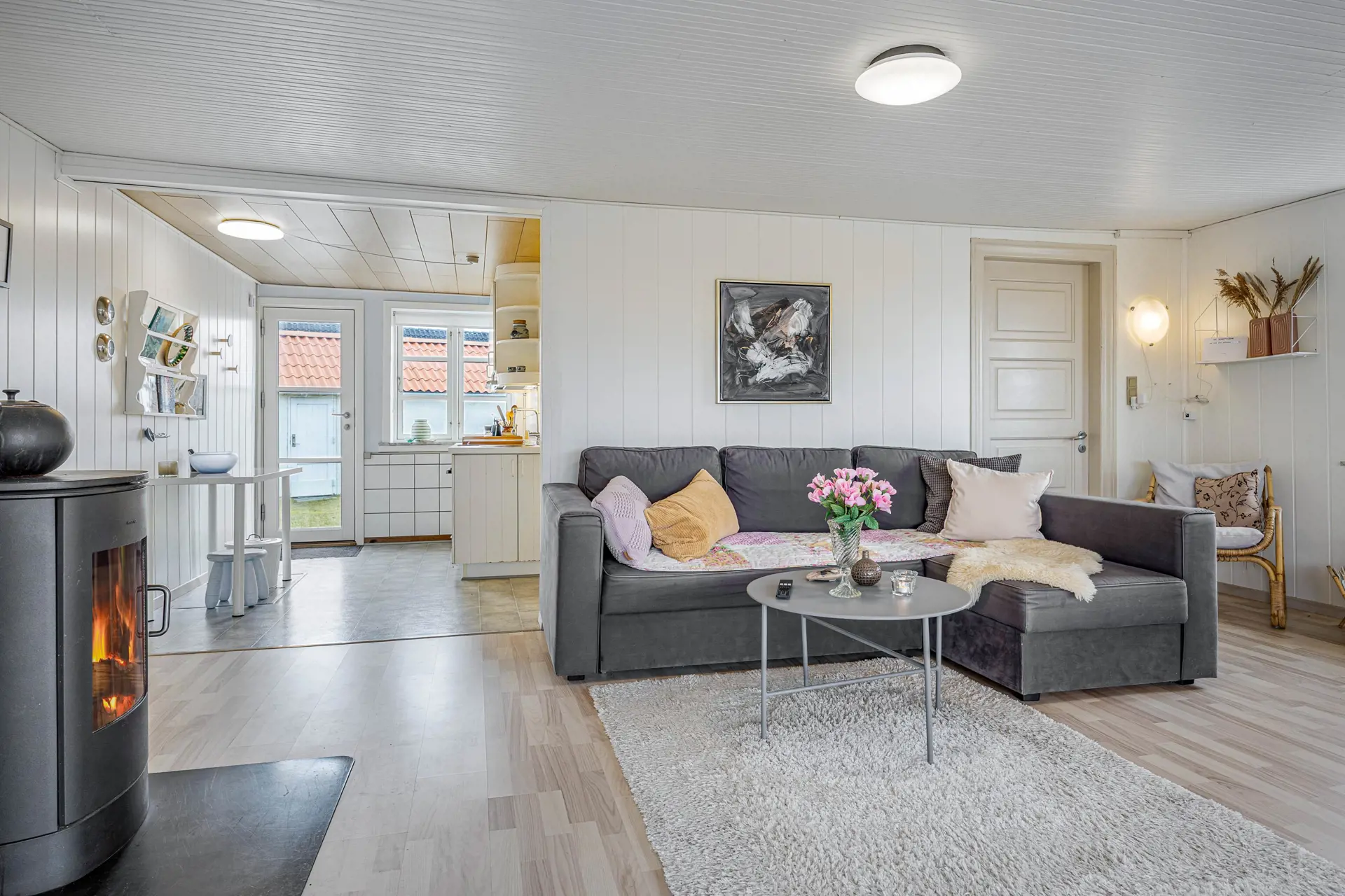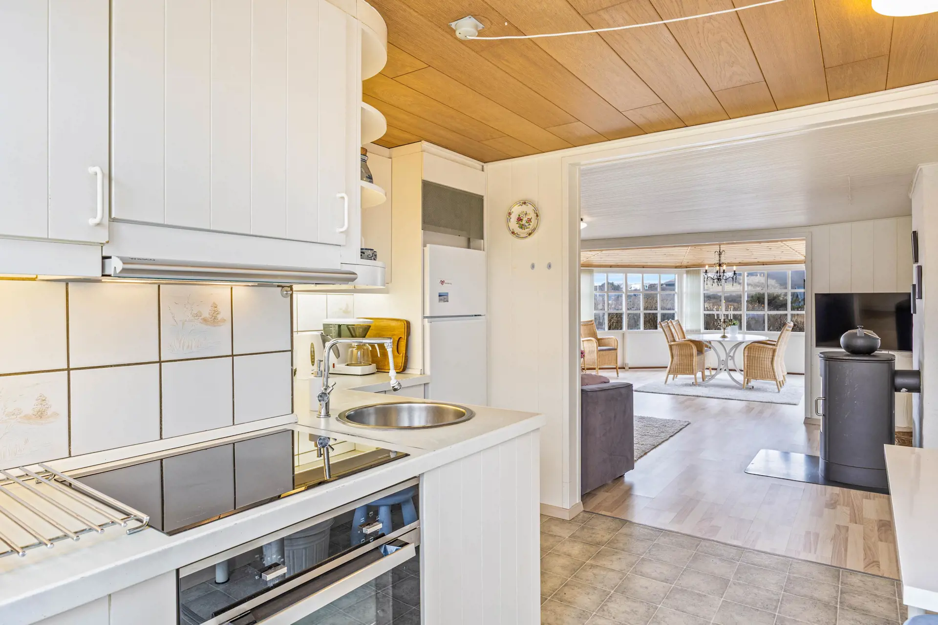 Im Ferienhaus empfängt euch eine gemütliche Atmosphäre, die zu langen Abenden vor dem Holzofen und einem ausgiebigen Frühstück am Morgen einlädt. Der Wohnbereich ist großzügig gestaltet und mit Liebe zum Detail eingerichtet. Ein echter Hingucker ist die große Fensterfront mit schöner Aussicht. Hier wurde auch der Esstisch platziert, an dem ihr neben gemeinsamen Essen, den nächsten Urlaubstag planen oder Spiele spielen könnt. Der Holzofen sorgt an kühleren Tagen für wohlige Wärme und dieses typische Urlaubsgefühl, wenn draußen die Nordseeluft weht und ihr es euch auf dem Sofa bequem macht. Zusätzlich hilft euch die Wärmepumpe, die Temperatur schnell und effizient so einzustellen, wie ihr sie am liebsten habt.