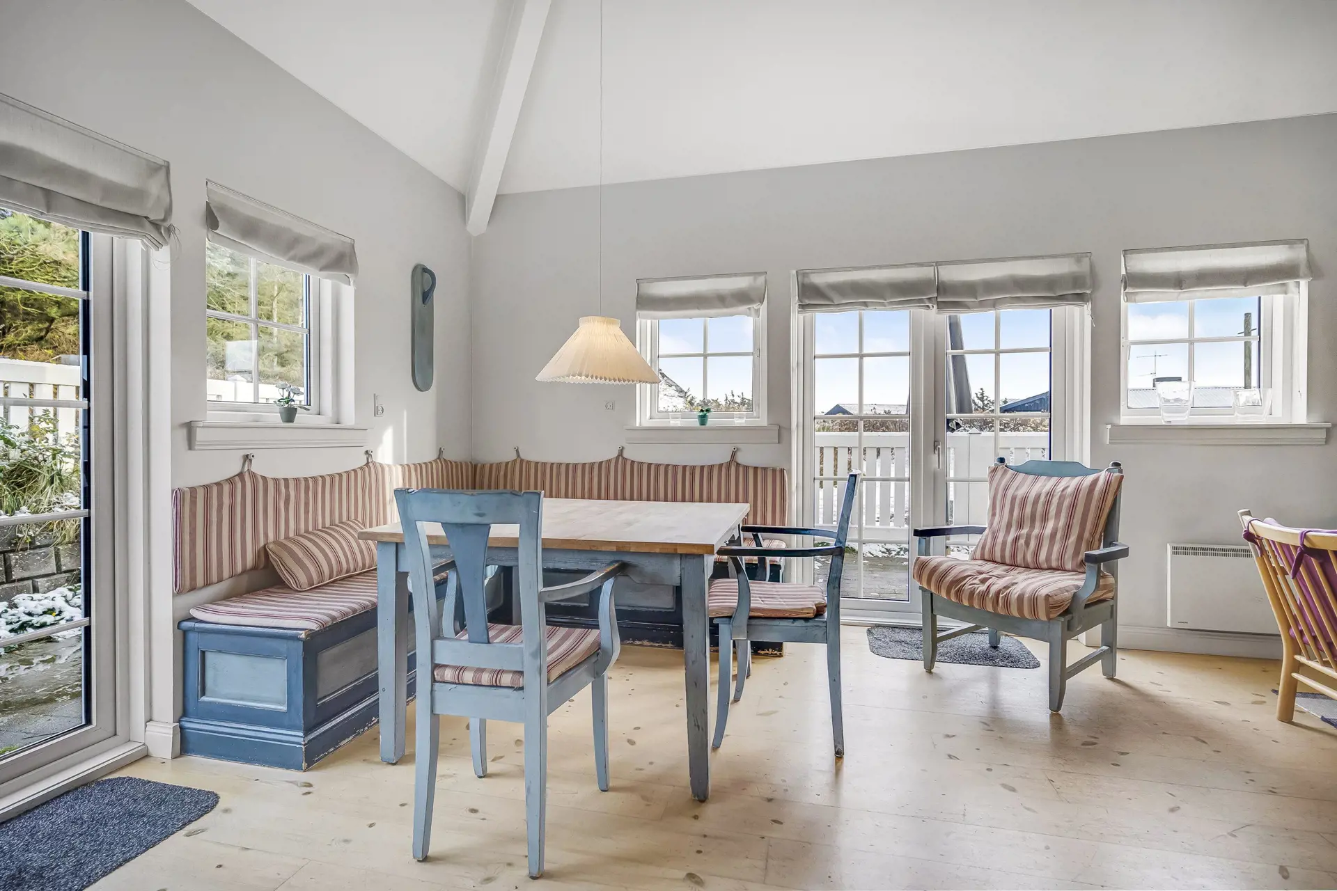 An kühlen Abenden könnt ihr euch vor dem Kamin versammeln und die gemütliche und warme Atmosphäre nach einem Tag am Meer genießen. Hier ist Platz, um morgens bei einem ausgiebigen Frühstück den neuen Urlaubstag mit Strandausflügen und Shoppingtouren zu planen. Kommt im einladenden Wohnzimmer zur Ruhe, lest ein Buch oder schaut gemeinsam einen Film. Ihr könnt auch eure eigenen Lieblingsfilme und -serien über einen im Fernseher integrierten Chromecast streamen, sofern ihr über eigene Streaming-Dienste verfügt.