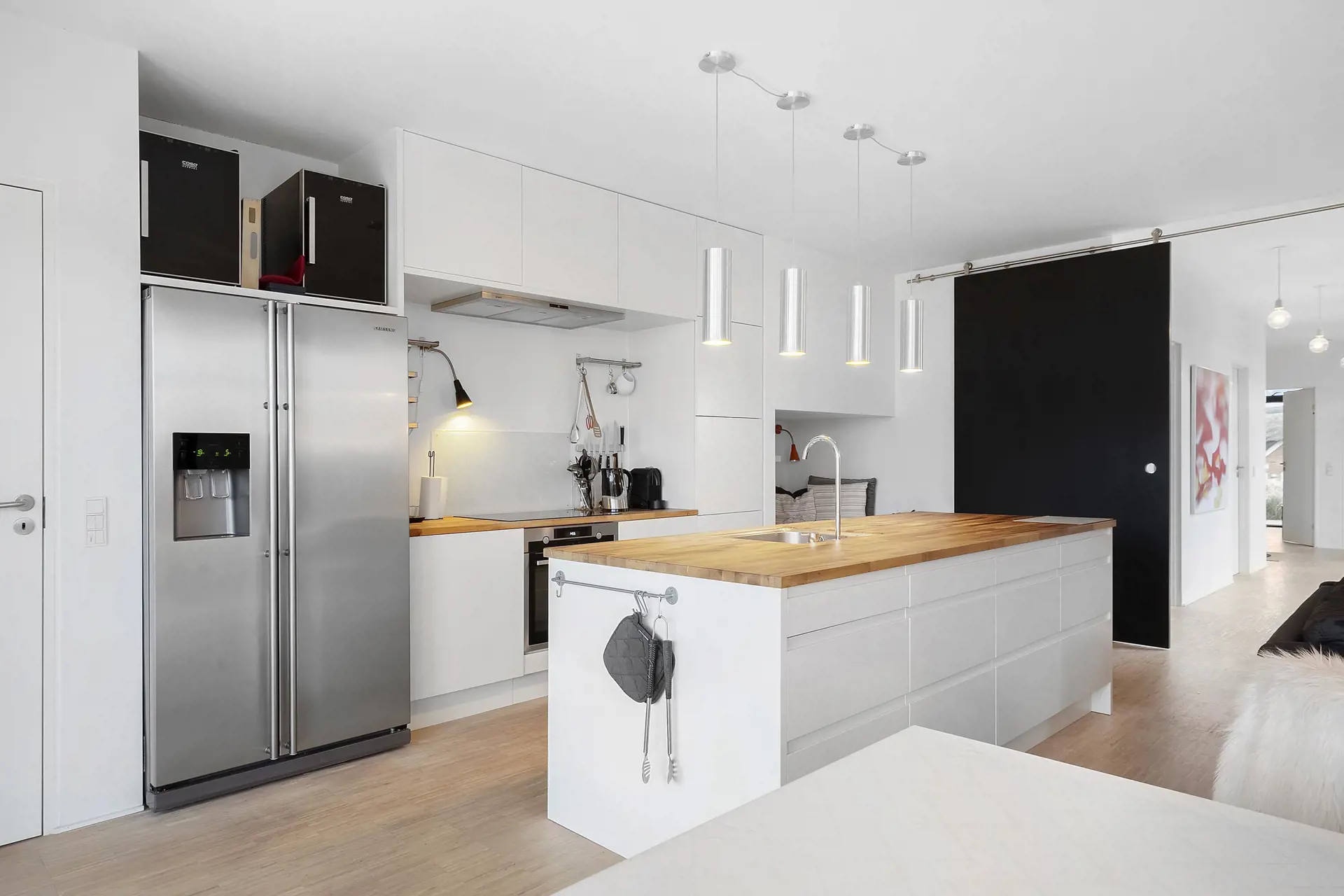 Die moderne und gut ausgestattete Küche ist offen in den Wohnraum integriert, sodass ihr euch beim Kochen nicht ausgeschlossen fühlen müsst und alle mithelfen können. Unterstützt werdet ihr auch von der Spülmaschine, damit nach dem Essen mehr Zeit für gemeinsame Momente bleibt. Für eure Vorräte steht ein separater 100-Liter-Gefrierschrank zur Verfügung, praktisch für Eis, Fisch, Snacks oder das Grillgut im Sommer. Auch längere Aufenthalte bleiben unkompliziert, denn Waschmaschine und Trockner kümmern sich um eure Kleidung.