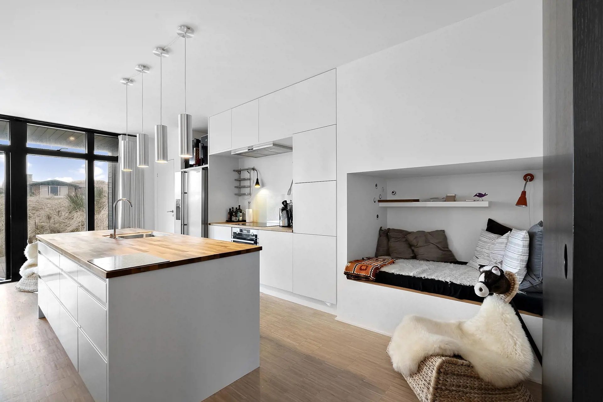 Mit dem Betreten des Ferienhauses startet euer Urlaub und die Zeit der Erholung kann beginnen. Das gemütliche Ambiente wird durch moderne Elemente ergänzt und die geschmackvolle Einrichtung ist ein Hingucker. Im offenen Wohn– und Essbereich kann jeder ein gemütliches Plätzchen finden. Sei es auf der Couch, vor dem Fernseher oder dem Kamin, am Esstisch oder im Alkoven. Der Kamin sorgt für Wärme und dieses besondere Urlaubsgefühl, wenn ihr nach einem langen Tag am Strand wieder nach Hause kommt und die Füße hochlegt. Für eure Unterhaltung ist ebenfalls gesorgt, mit deutschen Fernsehprogrammen oder einem Google Chromecast, mit dem ihr bequem eure Lieblingsserien streamen könnt, ohne lange zu suchen.