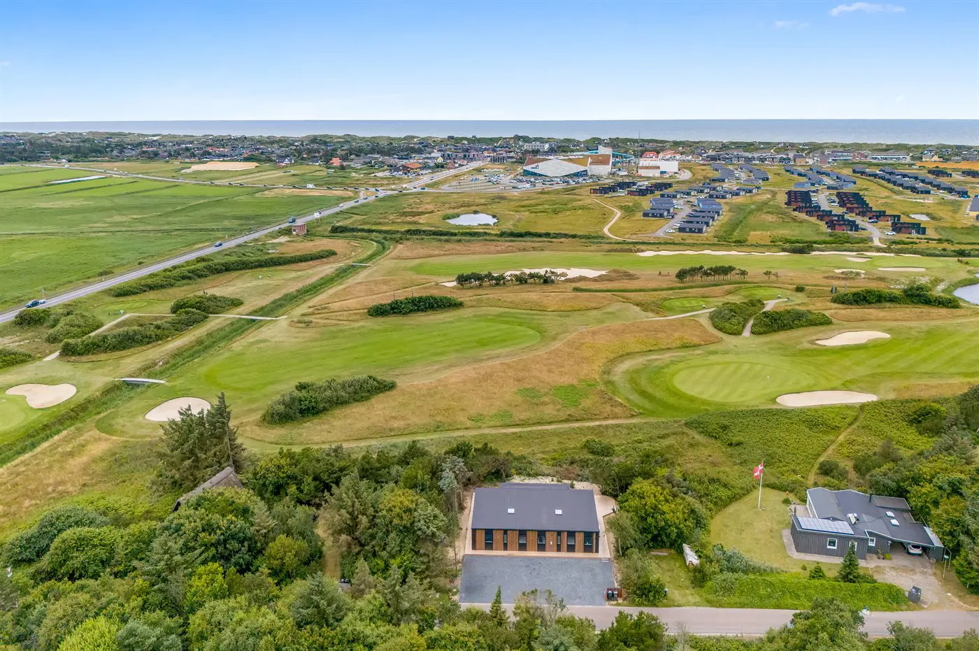 Genieße einen wunderschönen Urlaub in einem modernen Ferienhaus - auf einem attraktiven Grundstück mit Blick auf den Golfplatz und auf den Ferienort Søndervig.