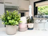 Das Ferienhaus bietet 79 gut genutzte Quadratmeter, verteilt auf eine schöne Wohnküche mit hohen Decken, viel Platz, direktem Zugang zur Terrasse und viel Tageslicht.