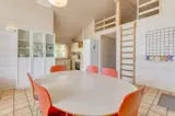 Die hohen Decken und grossen Fenster zum Garten, sorgen für viel Licht im luftigen Wohnbereich. Für besondere Wärme und Gemütlichkeit sorgen nicht nur die warmen Farben der Einrichtung sondern auch eine Fussbodenheizung, die sowohl in der Küche als auch im Bad vorhanden ist.