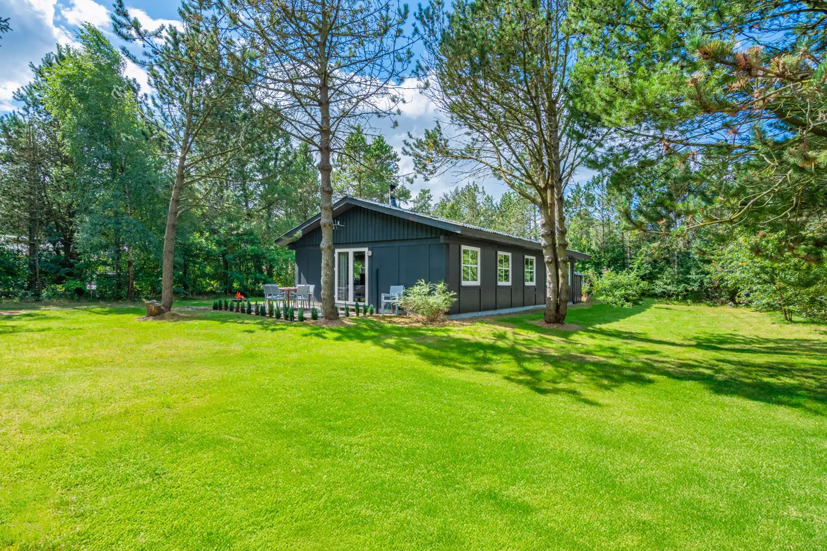 Der Außenbereich des Ferienhauses Søndervang 9 bietet ideale Bedingungen für erholsame Stunden im Freien. Das Ferienhaus liegt auf einem ruhigen Naturgrundstück in Houstrup, umgeben von hohen Bäumen und viel Platz, sodass ihr euren Urlaub in einer entspannten, privaten Atmosphäre genießen könnt.