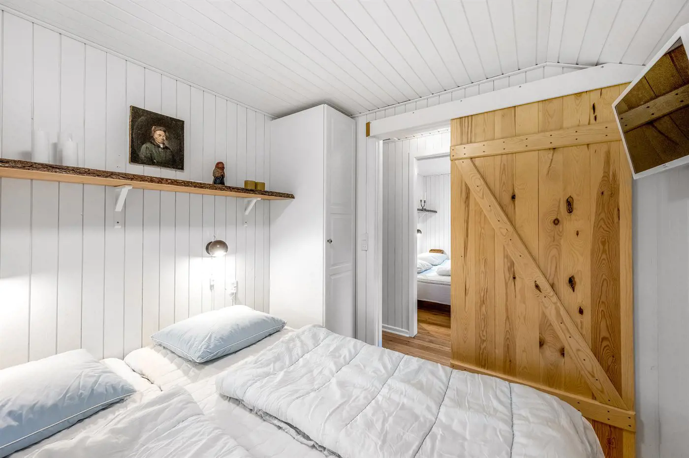 Die Schlafplätze verteilen sich auf 3 Schlafräume. 4 Schlafplätze in Doppelbetten. 2 Schlafplätze in einem Etagenbett.