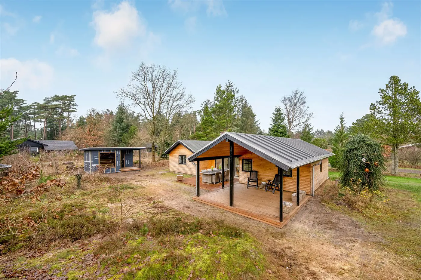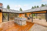 Die Ferienunterkunft liegt auf einem 2149 m² großen Naturgrundstück. Die Entfernung zum Meer beträgt 3000 m. Die Entfernung zum Fjord beträgt 2000 m. Die nächste Einkaufsmöglichkeit liegt 4000 m entfernt. Es steht ein offenes Terrassenareal zur Verfügung. Es steht ein offenes Terrassenareal zur Verfügung. Außerdem gibt es überdachte Terrasse. Geräteraum. Außensauna. Außendusche. Parkplatz auf dem Grundstück.