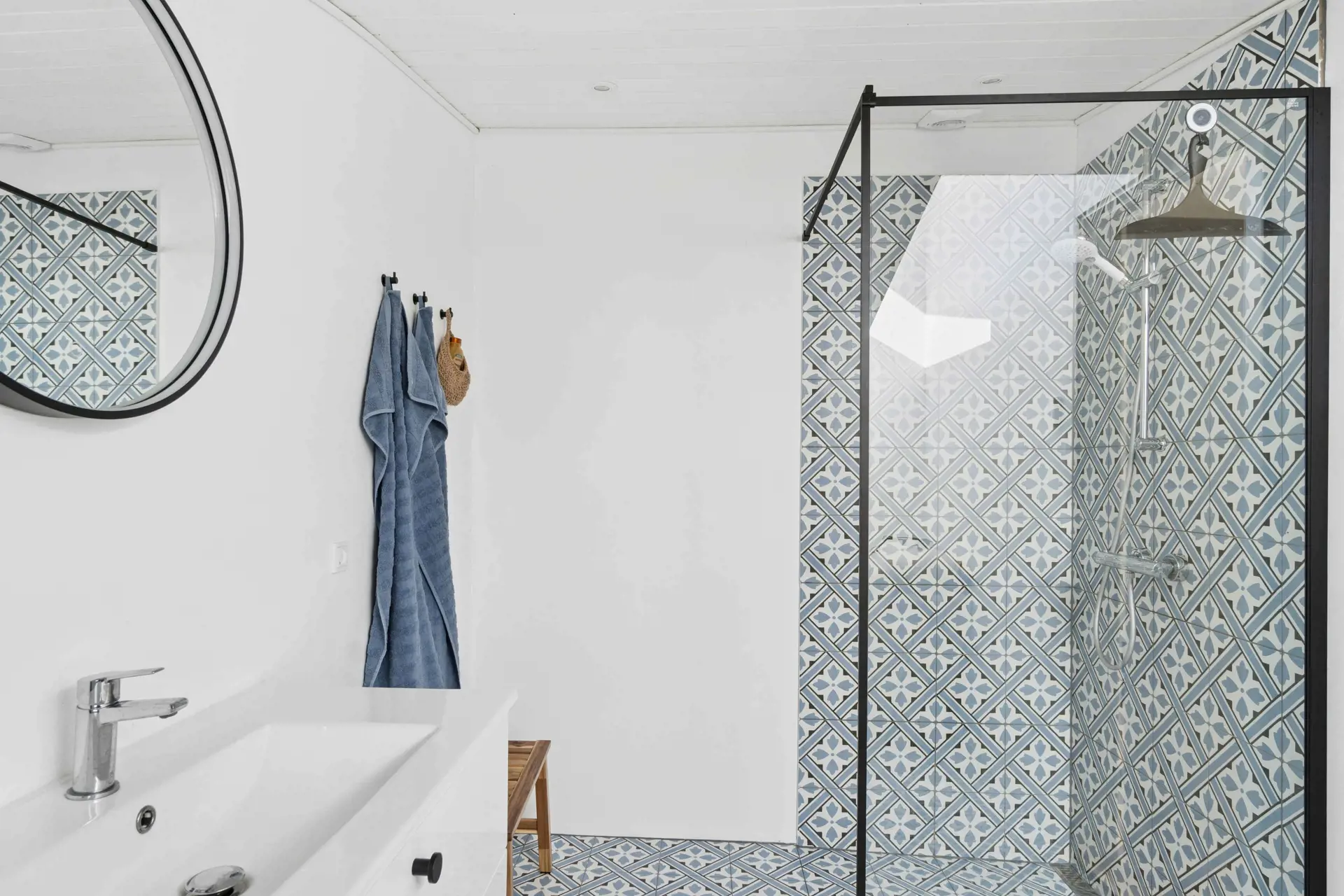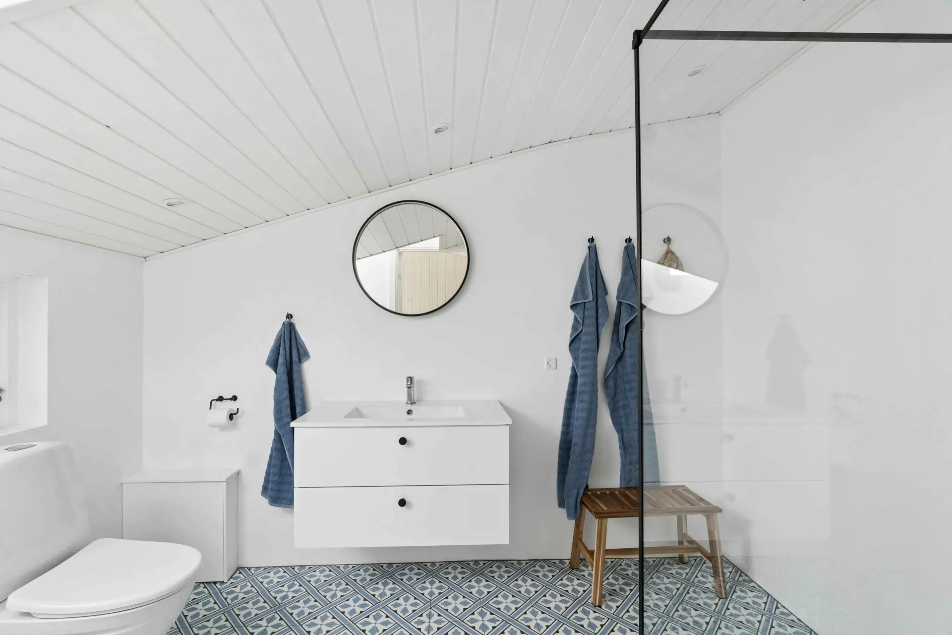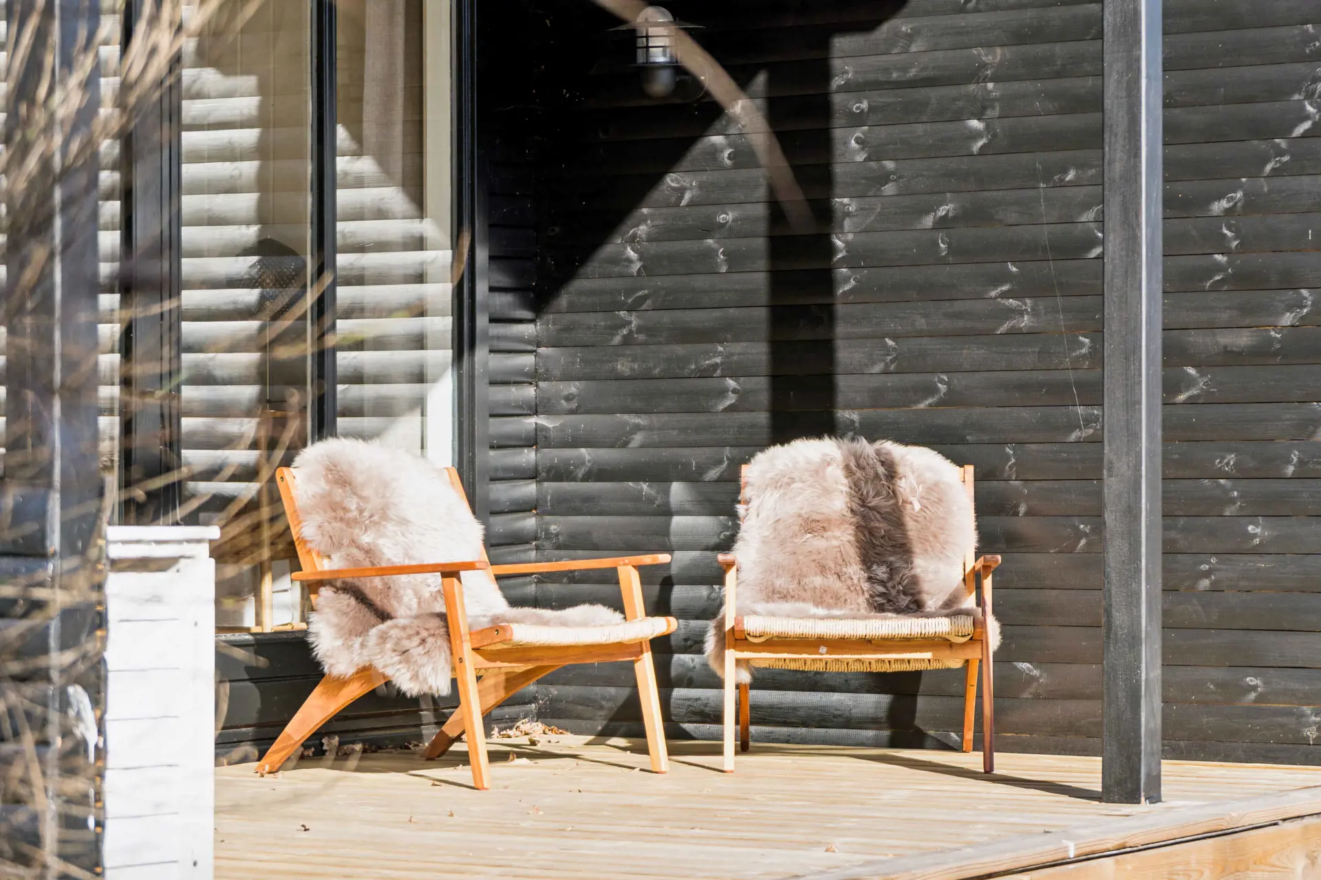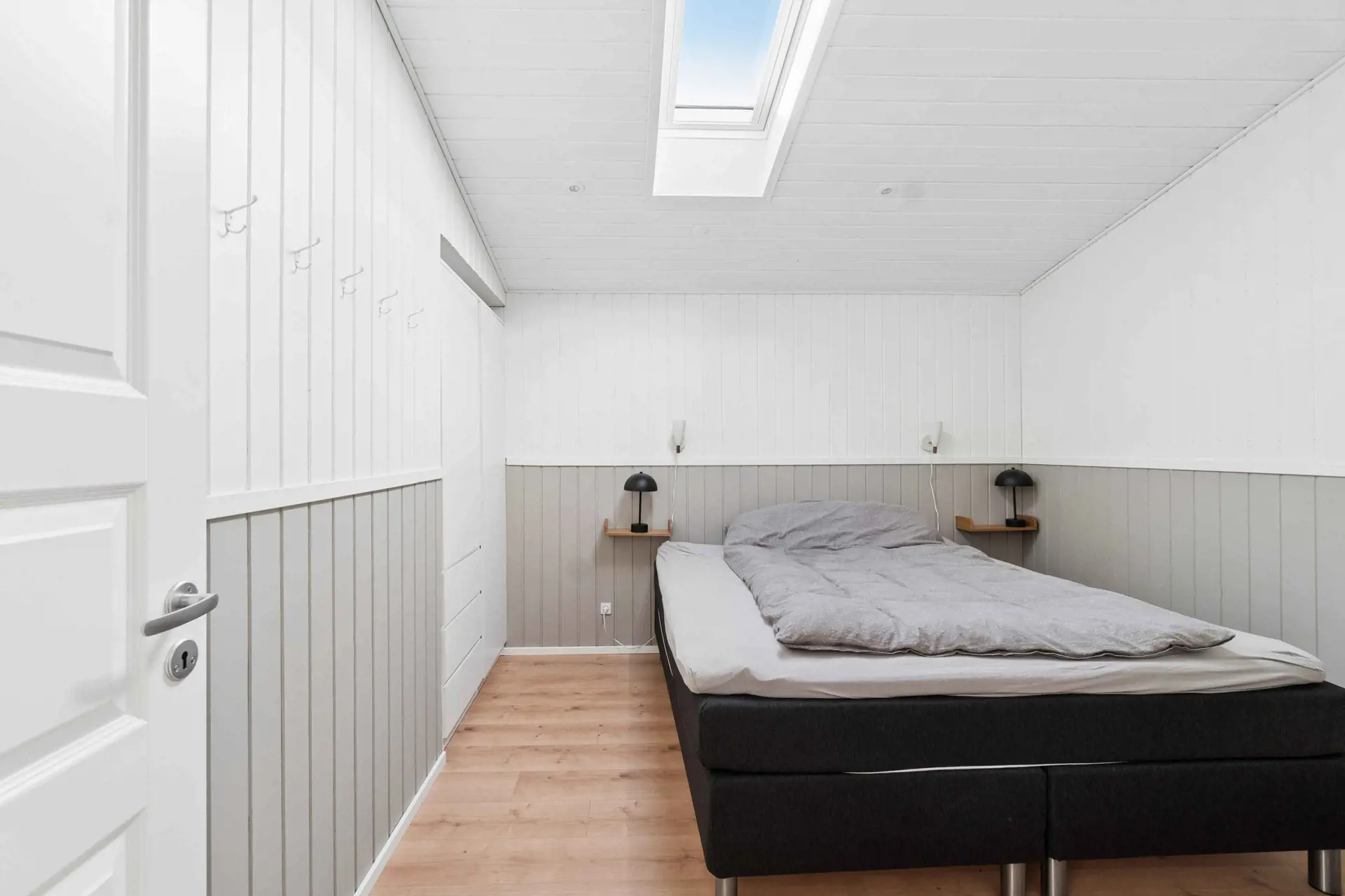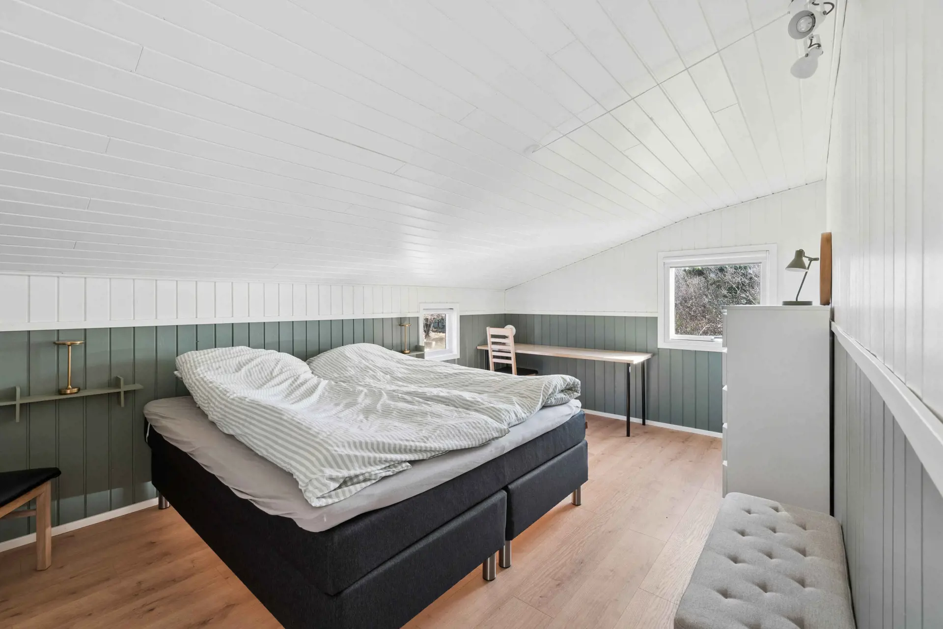 Das Haus verfügt über 4 große Schlafzimmer mit Doppelbetten. Zusätzlich kann ein Daybed für eine weitere Person genutzt werden. Fußbodenheizung in allen Räumen sorgt für angenehme Wärme, und der Kaminofen schafft zusätzliche Gemütlichkeit.