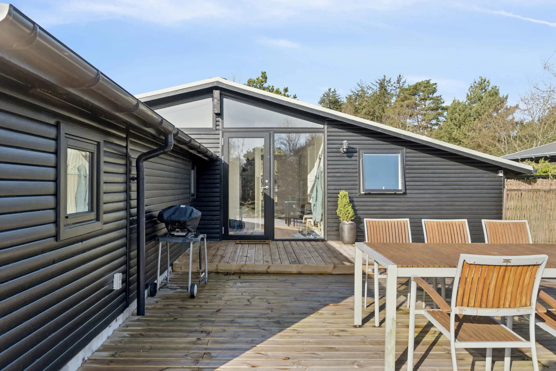 Im Außenbereich gibt es viel Platz, um den Urlaub zu genießen. Die große Holzterrasse mit 85 m² eignet sich ideal zum Entspannen, Essen und Zusammensein. Überdachte Bereiche sowie Terrassen nach Süden, Westen und Norden bieten Sonne und Schutz rund um die Uhr.