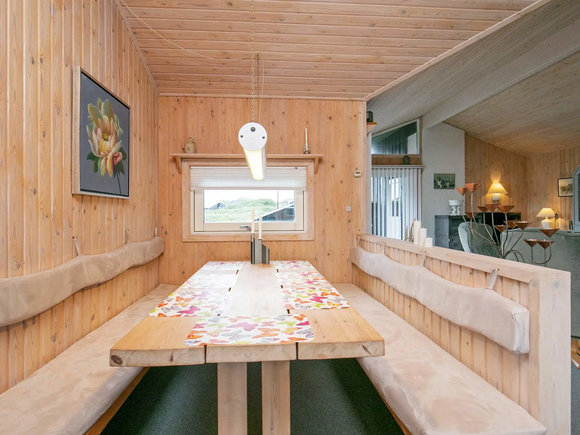 Sehr gemütlich eingerichtetes und gut ausgestattetes Ferienhaus mit viel Holz innen und außen. Liegt in landschaftlicher reizvoller Umgebung bei Blokhus Strand. Vom Wohnzimmer, der Terrasse und dem Grundstück aus haben Sie schönen Ausblick zur Dünenlandschaft ringsum.