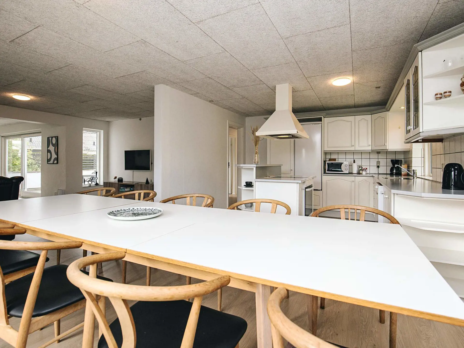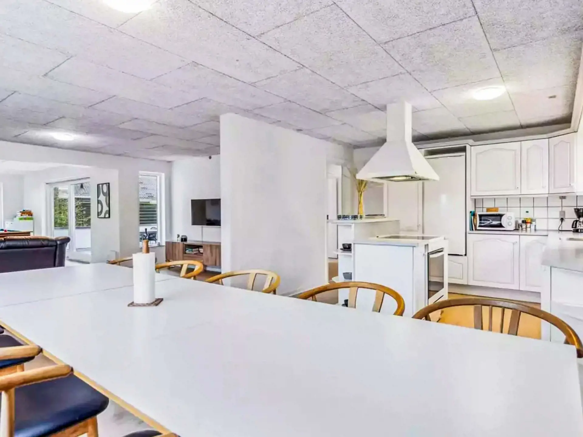 Zentral gelegene Villa in Kaas, unweit des Badeortes Blokhus. Das gemütliche Haus verfügt über 1 Schlafzimmer mit Doppelbett und 2 großen Etagenbetten. 2 Schlafzimmer mit Doppelbett, 1 Zimmer mit Doppelbett (160 cm breit). 2 Badezimmer. Große Wohnküche mit viel Platz. Wohnzimmer mit Kamin und TV. Rund um das Haus gibt es mehrere schöne Terrassen mit Gartenmöbeln. Hauswirtschaftsraum mit Waschmaschine und Trockner. Haustiere sind willkommen.