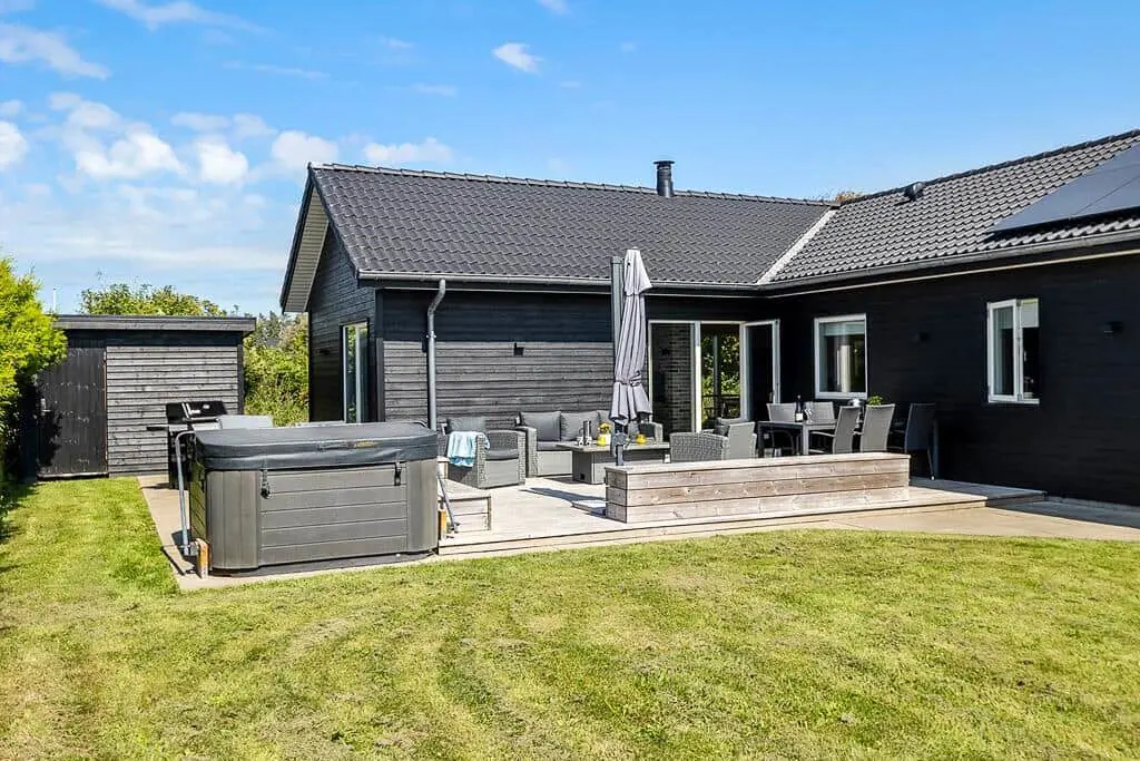 Sobald die Sonne vom Himmel lacht, können Sie Ihr Urlaubsleben auch ganz entspannt hinaus auf die beiden offenen Terrassen verlegen, auf denen Sie hervorragend frühstücken, ausgedehnte Sonnenbäder genießen und gemeinsam allabendlich grillen können. Die Grasfläche bietet Ihnen und Ihren Kindern viel Platz für Garten- und Ballspiele. Die jüngsten Urlauber dürfen sich zudem auf ein eigenes Trampolin freuen. Ab der Sommersaison 2022 glänzen die Außenanlagen darüber hinaus auch mit einem Außenwhirlpool, sodass Sie sogar unter freiem Himmel herrlich erholsame Stunden voller Wellnessflair verleben werden.