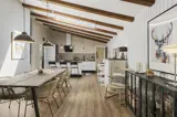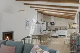 Die Küche ist mit Kühlschrank ausgestattet. Außerdem gibt es 4 Keramik-Kochfelder, Umluftofen, Mikrowelle sowie Geschirrspüler.