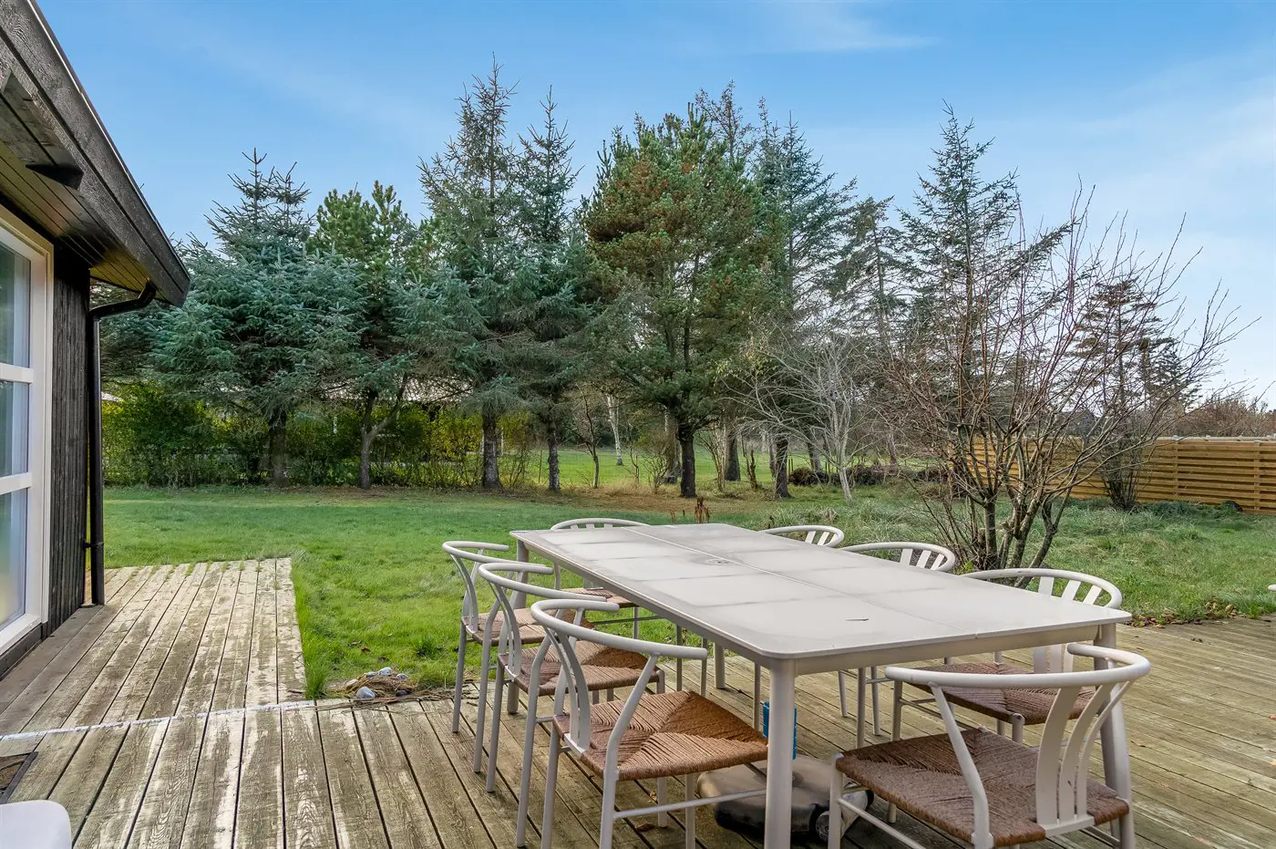 Draußen erwartet euch eine große, herrliche Terrasse, auf der ihr den ganzen Tag ungestört die Sonne genießen könnt – auf dem abgeschirmten Grundstück. Perfekt für Grillabende, Entspannung mit einem guten Buch oder zum Spielen mit den Kindern.