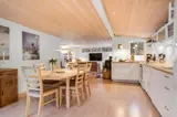 Die Küche ist mit Kühlschrank ausgestattet. Außerdem gibt es 4 Keramik-Kochfelder, Umluftofen, Mikrowelle, Airfryer sowie Geschirrspüler.