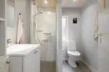 Es gibt 1 Badezimmer mit Duschnische und 1 Toilette.
