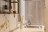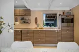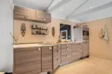 Die Küche ist mit Kühlschrank ausgestattet. Außerdem gibt es 4 Keramik-Kochfelder, Umluftofen, Mikrowelle sowie Geschirrspüler.